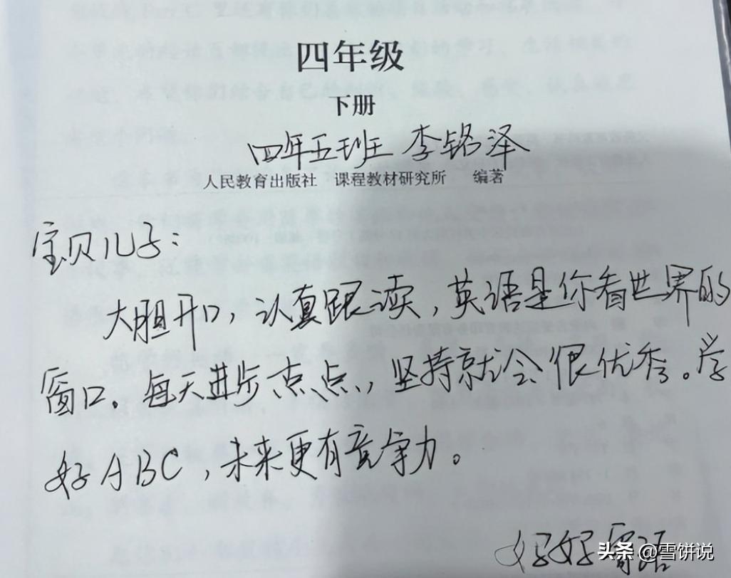 自我感动?一位四年级孩子的妈妈为了鼓励儿子,在每本教材的第一页都亲笔写下自己寄语,她觉得这可以影响到孩子,可当她把这个事分享到网上后,却遭到网友群嘲,被质疑是不顾孩子感受的自我感动行为