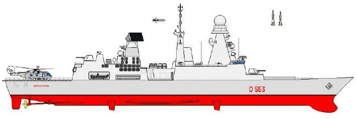 武器装备:1座四十八联装“席尔瓦”垂直发射系统、8具“飞鱼”反舰导弹发射装置、2座三联装MU90鱼雷发射管、2门76毫米舰炮、2门20毫米F2舰炮动力装置。