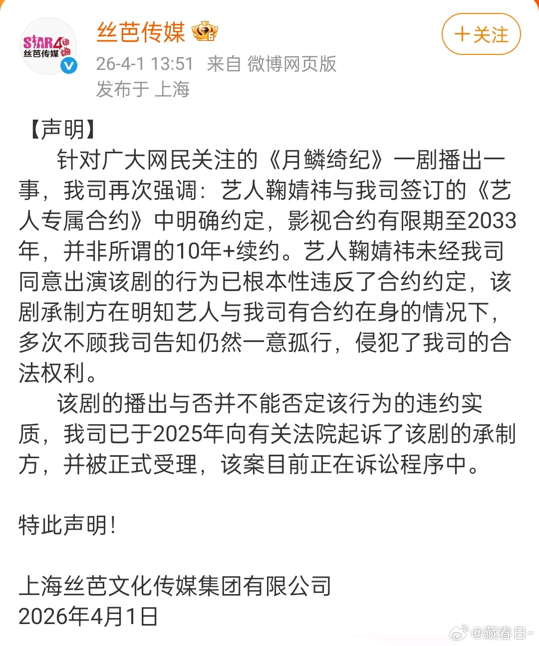 丝芭传媒有完没完了,又要起诉这个月鳞绮纪,到底要干啥,有一种急眼的感觉,剧都播了