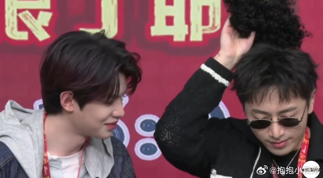 黄明昊想当白客爹 《我的妈耶》扫楼现场,黄明昊直言要当白客的爹,白客小卷毛造型亮眼,父子互换角色,网友纷纷留言“笑到肚子痛”。