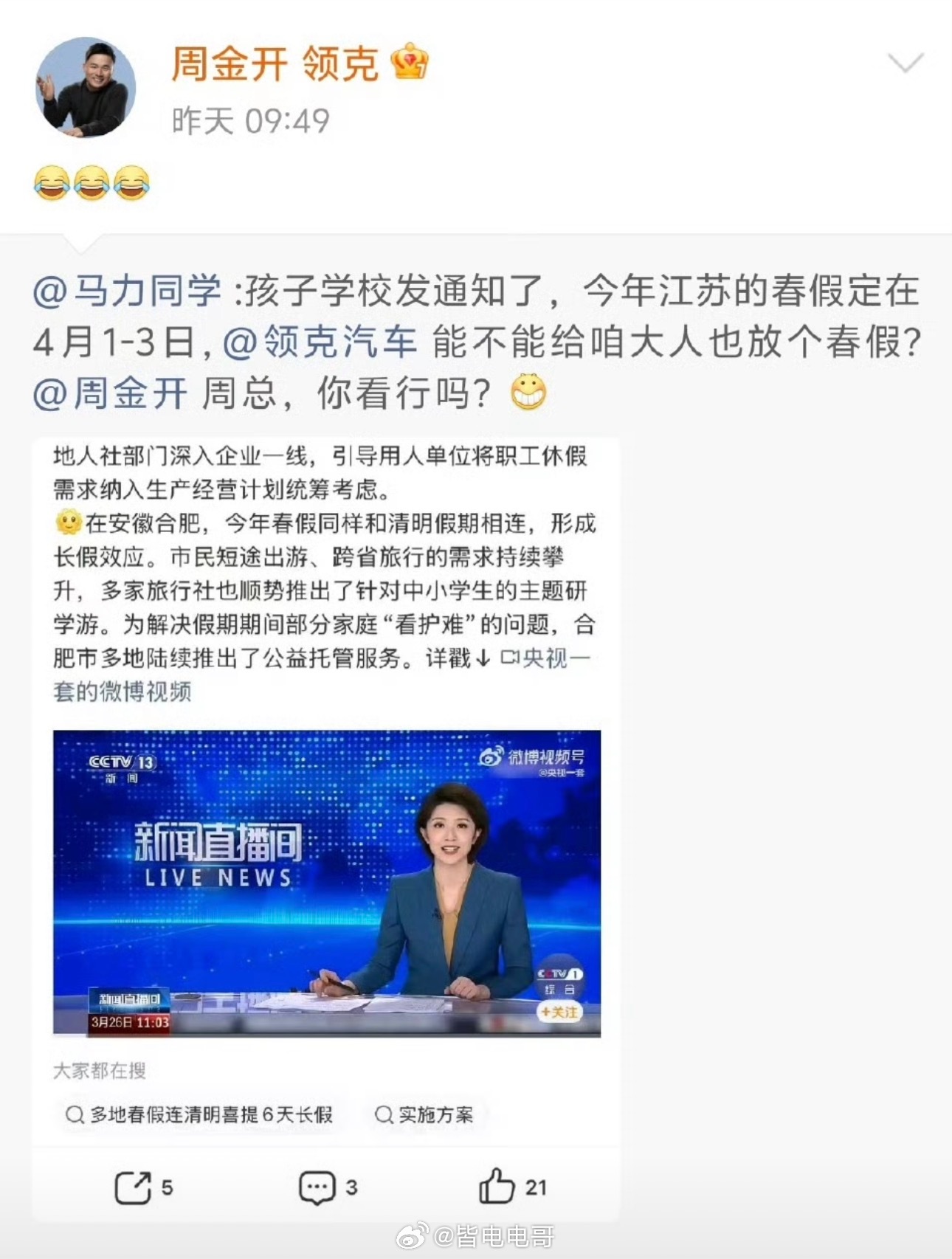 领克宣布全国销售放1天春假 愚人节不用上班!都以为这是个玩笑话没想到领克真给员工放假了强烈建议春假全国普及上班放假领克汽车