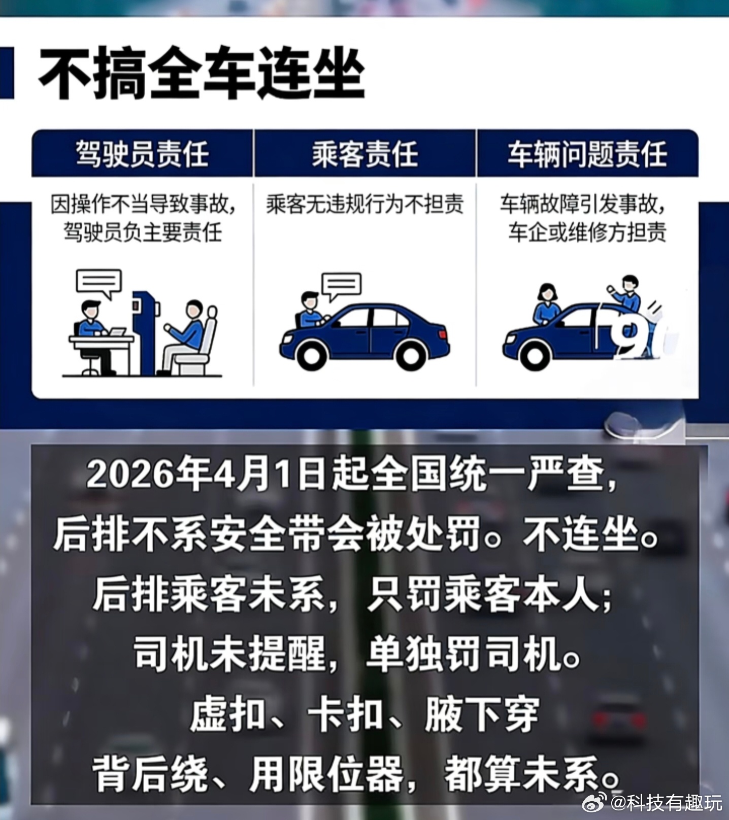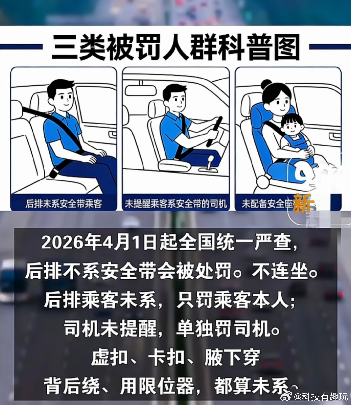 4月1日起全国严查后排未系安全带全员全程系安全带成为硬性要求,我觉得挺好的!而且只罚乘客本人,司机要是未提醒,单独罚司机。虚扣、卡扣、腋下穿背后绕、用限位器都算未系