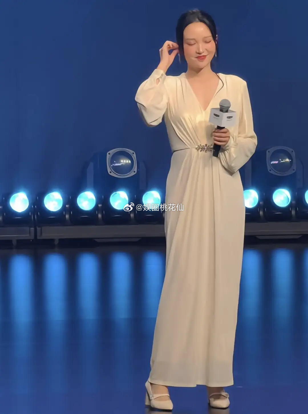 《妻子的浪漫旅行》节目结束了录制之后,金莎也没有闲着,近日她又出席了一档线下活动。再唱经典曲目,穿米色长裙身材圆润,看起来像怀孕了