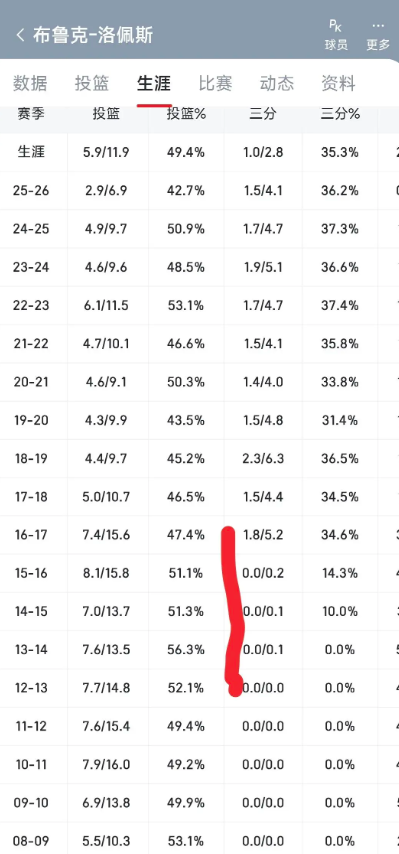 当时看阿联打nba时候就是他 然后现在都换成小杨了还能看见他 而且作为一个传统低位慢速中锋竟然没有被小球时代淘汰 生涯前几年从来不投三分 然后突然就能场均扔5个进2个35%的命中率 产量效率都可以 神奇