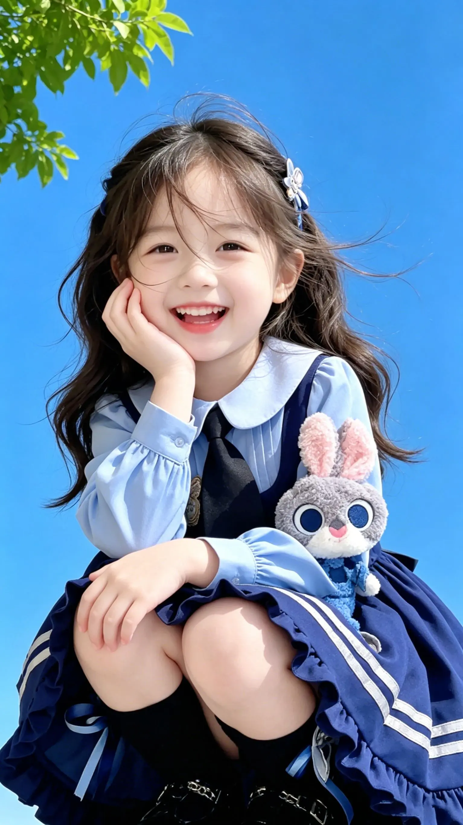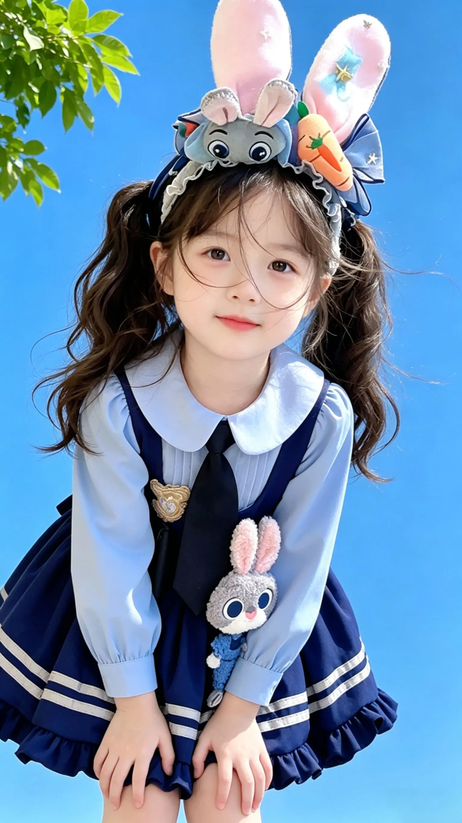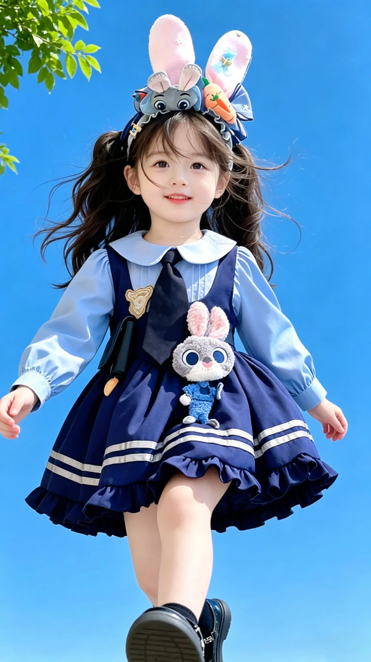 女童学院风洛丽塔~生女儿的快乐真的被这条朱迪洛丽塔拉满了!疯狂动物城朱迪警官主题,蓝白学院风配色,立体朱迪玩偶+兔耳发箍,直接把童话穿在了身上✨ 纯棉面料软乎乎的,完全不扎肉,荷叶边裙摆跑起来超灵动,女儿穿去幼儿园,回头率直接100%!不管是生日派对、拍照出片,还是日常穿,这条裙子都能打!宝妈们,给女儿的童话梦,就从这条朱迪洛丽塔开始吧~