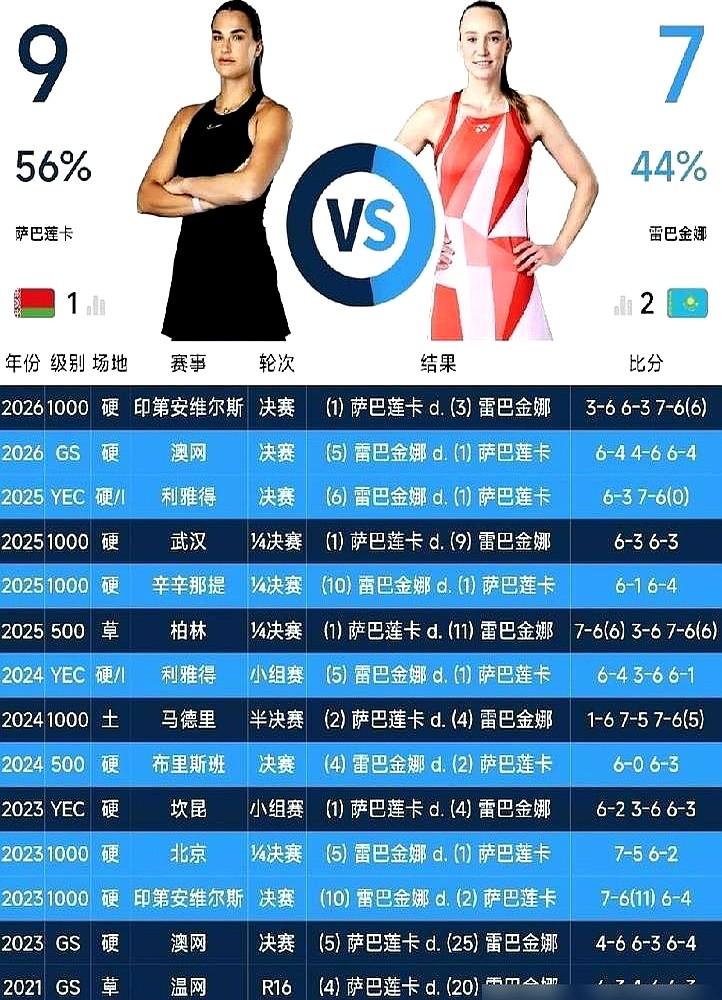 世界第一萨巴伦卡,赛季23胜1负,唯一的败仗竟是输给同一个人! 年初澳网决赛,她输给了莱巴金娜,这已经是她连续第四次在决赛里栽在对方手里,简直成了心魔。 转眼到了印第安维尔斯,又是决赛,又是她俩。萨巴伦卡在抢七局5-6落后时,硬是靠一记反手穿越球救回赛点,最后8-6拿下,当场就激动了! 紧接着迈阿密半决赛,萨巴伦卡6-4、6-3直接把莱巴金娜送走,完成赛季双杀,还顺手拿了“阳光双冠”。 这剧本,就是翻过那座山,眼前一片开阔。