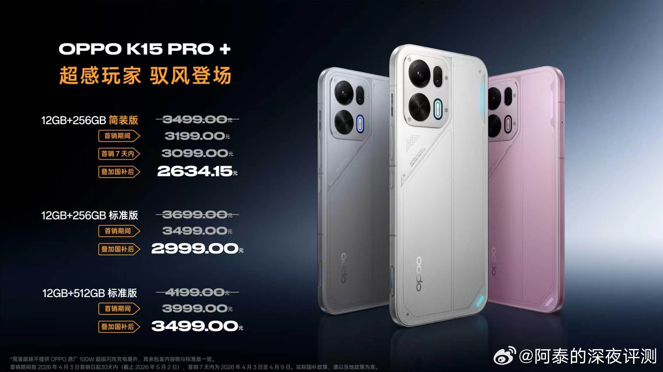 K15 Pro+12GB+256GB 简装版 3499元起首销期间 3199元起参加国补后 3099元起12GB+256GB 标准版 3699元起参加国补后3499元起12GB+512GB 标准版 4199元起参加国补后 3999元起