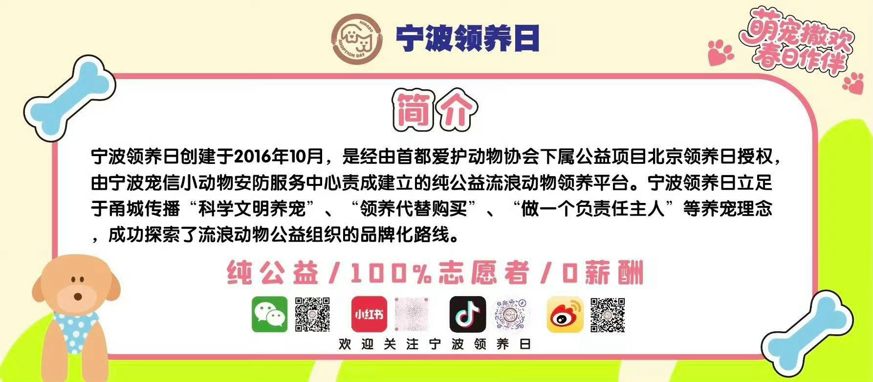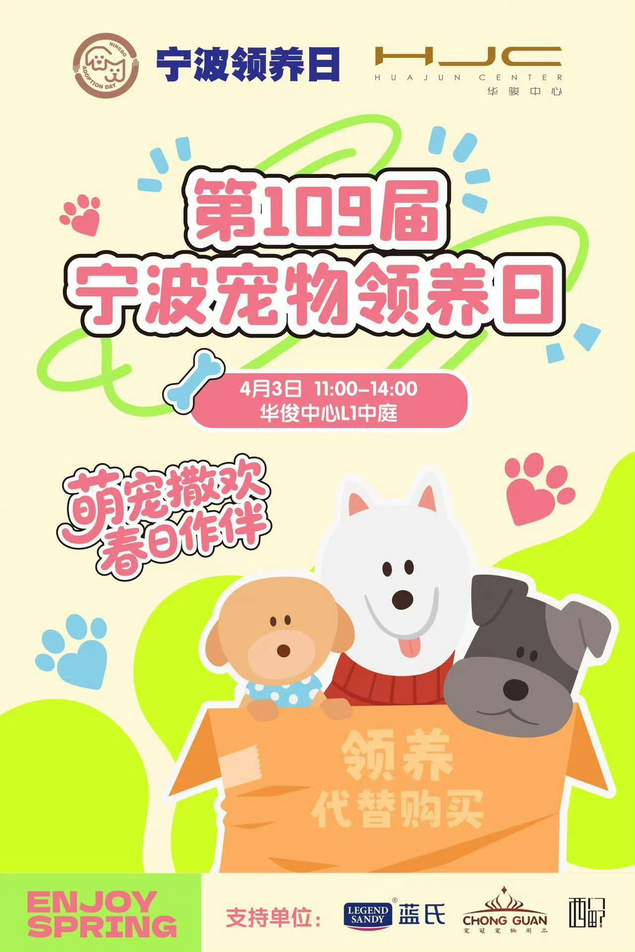 第109届宁波领养日来啦 萌宠撒欢,春日作伴🌸💞4月3日中午11:00-14:00第109届宁波领养日登陆华骏中心1楼👀40+只曾流浪,如今超健康的汪星人猫星人,等你来抱走!🐶🐱感谢您选择领养代替购买~🍀码住速来~~