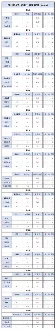 本次澳门世界杯,国乒派出了老中青结合的豪华阵容,截至目前,已有6位选手顺利晋级16强,且全部保持不败战绩,展现出了国乒的绝对统治力: