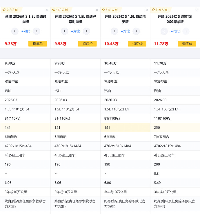 全新速腾S 7.98万起上市 一看速腾S真便宜,大众整明白了~ 再一看 给我干蒙