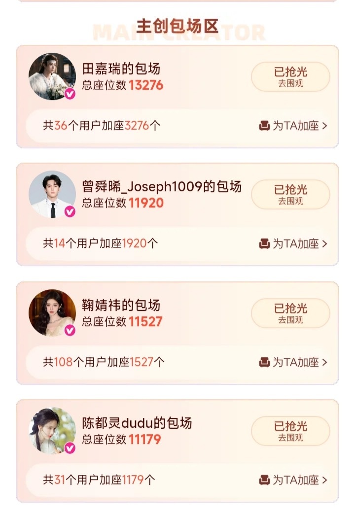 月鳞绮纪四位一番主演的云包场也有拉表。这就是人多力量大的时候!!!
