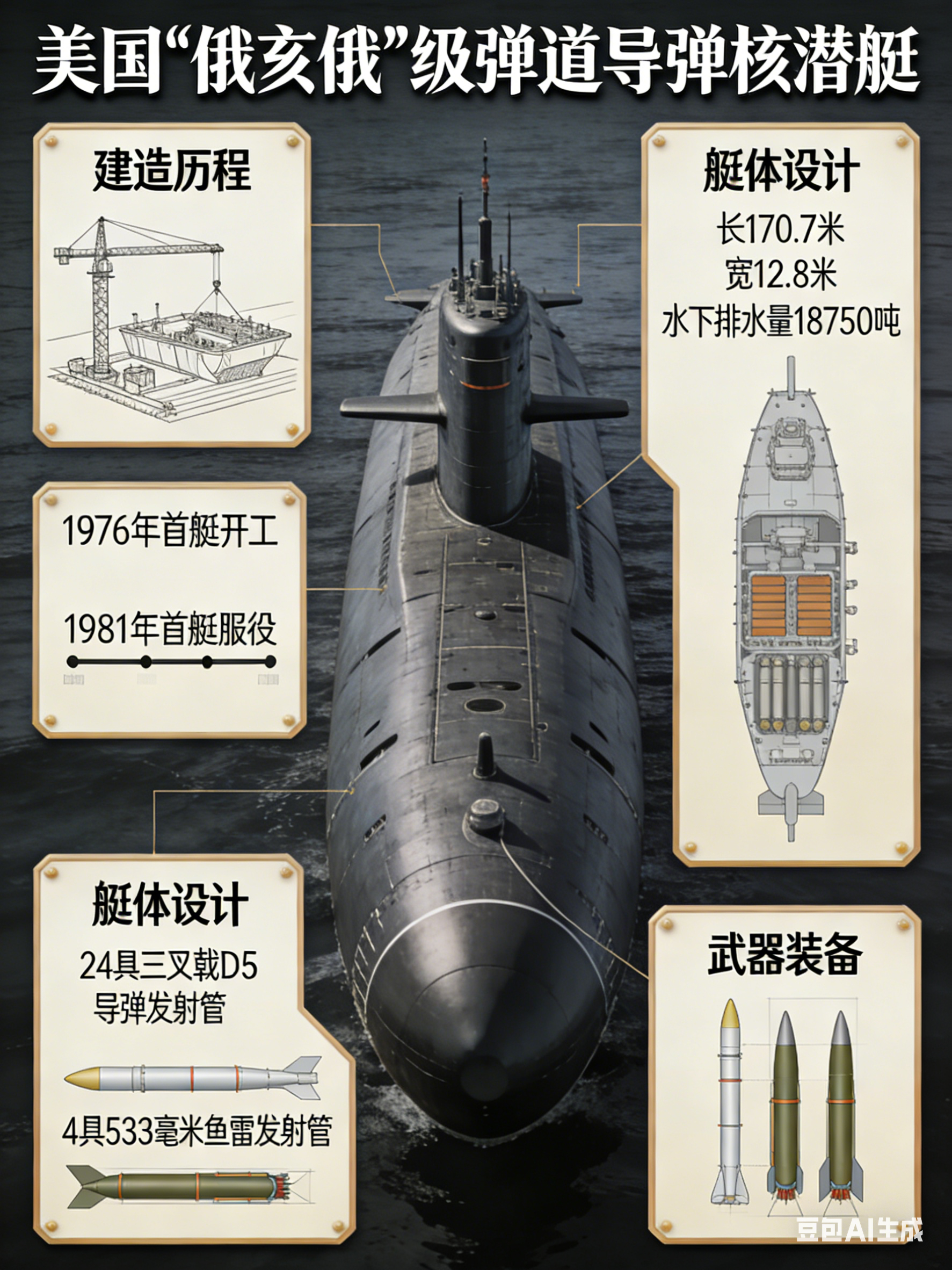 “俄亥俄”级潜艇(Ohio submarine)是美国建造的第四代弹道导弹核潜艇,一共建造了18艘,目前全部在役。
