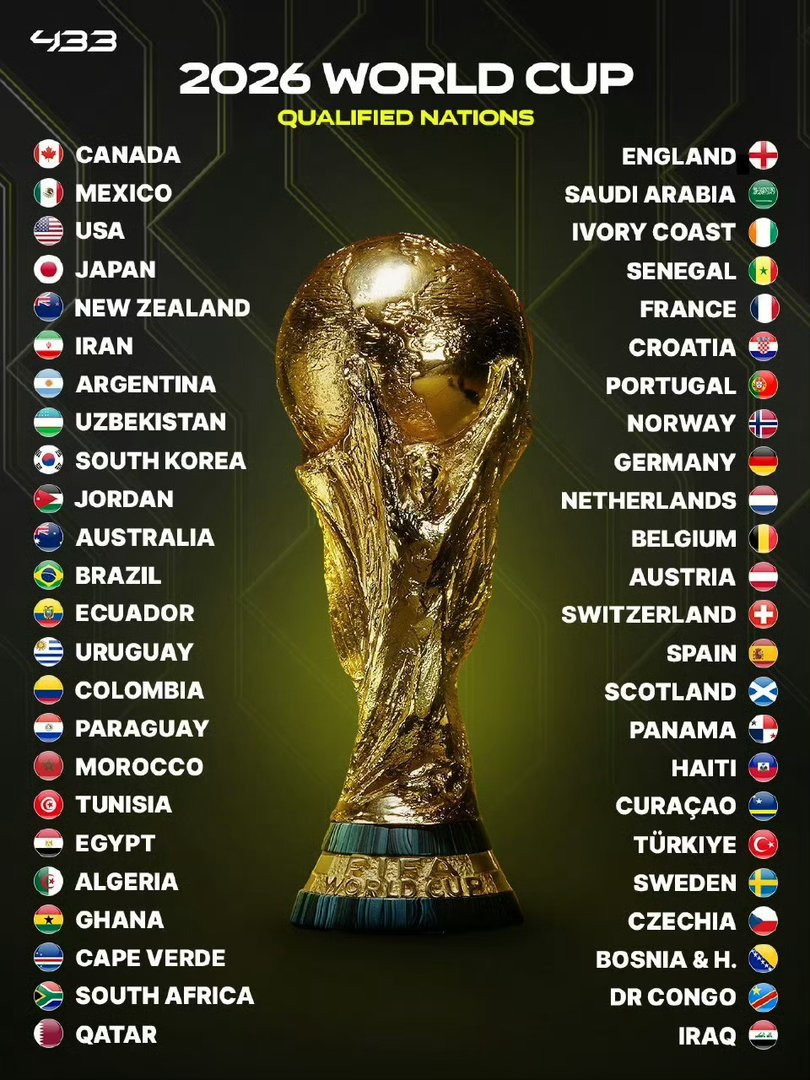 如今的亚洲足球,早已不是世界杯的“陪跑者”,而是能够冲击淘汰赛、甚至创造奇迹的力量。2026年美加墨世界杯,9支亚洲球队将向世界证明,亚洲足球已经站在了世界足坛的中央。四、2026世界杯,亚洲球队的看点全解析