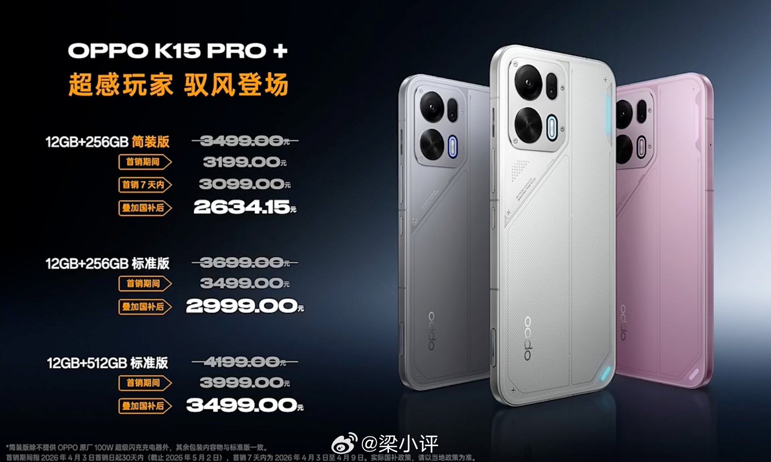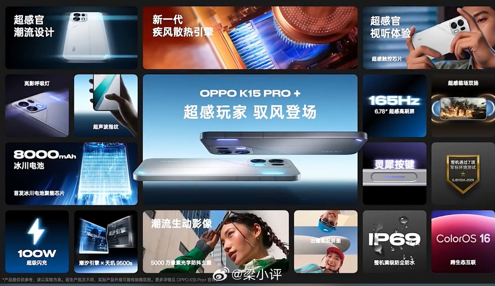 OPPO K15 Pro+165hz高刷屏幕四发声单元,双扬声器330hz触控采样率物理按键,自定义天玑9500s+潮汐引擎3D超声波指纹识别8000毫安时冰川电池+100W