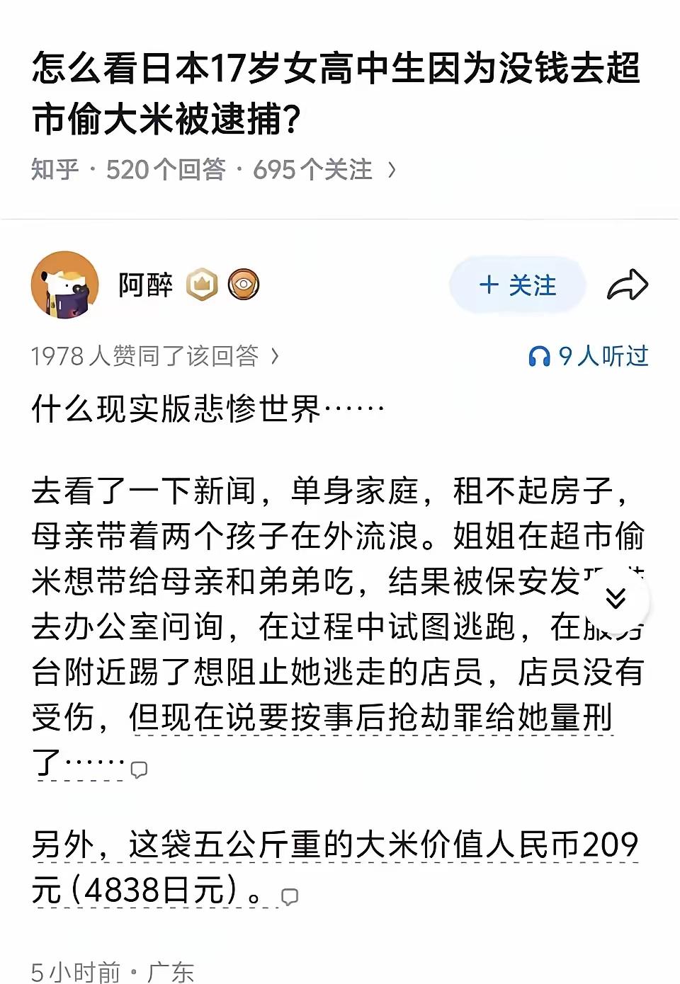 日本17岁女高中生,和母亲弟弟一起流浪,为了三人不挨饿,偷大米被捕…… 公知们早就说过,一个人偷盗是他的问题,但他偷的是面包,那就是这个社会的问题。 这要在我们这边,媒体报出来,当地天都要塌了,扶贫工作重大失误,省市县乡村要撸一遍! 而公知们的故乡~日本,社会的确出了大问题! 日本在斩杀这一块,一点也不逊色于美国[看]