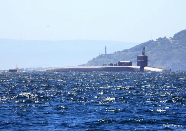 美国核潜艇在直布罗陀海峡进行人员轮换,背上驮着特种作战小潜艇 “佐治亚”号(USS Georgia,SSGN-729)在直布罗陀海峡进行人员轮换时被拍摄到,其背部还驮着用来进行特种作战的小潜艇。 很可能是要用特战小潜艇执行夺岛、登陆作战