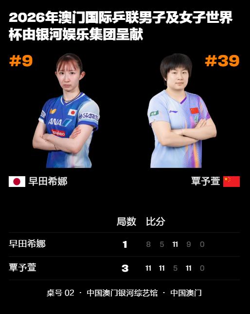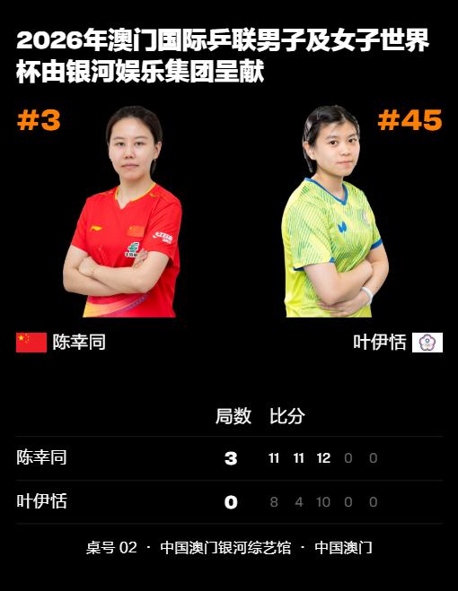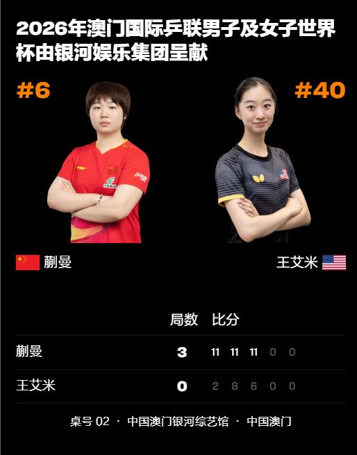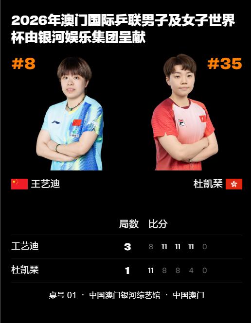 2026澳门世界杯第三日上半场,国乒女线稳稳的很安心,基本上都能小组出线了! 王艺迪3-1杜凯琹,孙颖莎3-0梅谢芙,陈幸同3-0叶伊恬,覃予萱3-1早田希娜,蒯曼3-0王艾米 晚间场还有一场是王曼昱对阵阿库拉,大概率也是问题不大,国乒女线真是太稳了,小组赛赢的毫无悬念,淘汰赛估计就精彩刺激了![灵光一闪]