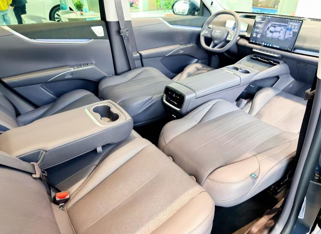 别克至境E7实车亮相 综合续航1630公里 ,带激光雷达+五恒座舱、四座加热 外观,封闭式前脸+主动开合下进气口,分体式灯组,上面C形灯带贯穿车标,下面V形矩阵大灯,车顶有激光雷达。 侧面,悬浮车顶,半隐藏门把手,20英寸轮毂+静音胎。 尾部,贯穿式尾灯有发光标,熏黑扩散器+尾翼。 动力,两种插混版本,1.5T插混CLTC纯电续航235km,综合续航高1630km,快充30%-80% 15分钟。 1.5L插混,纯电续航106-168km,零百加速7-7.1秒。预瞄式RTD悬架,支持6kW外放电。 内饰,双色,副驾零重力躺椅,前后排都带加热通风。大悬浮中控屏 + 液晶仪表 + HUD抬头显示+20扬声器音响,还有二排桌板、冷暖箱、五恒座舱。 车机用的是高通骁龙8775P芯片,智驾是Momenta R6大模型。 最后,别克至境E7的主要亮点: 悬浮座椅+四座加热通风+副驾零重力躺椅,预瞄RTD悬架,双层夹胶玻璃。 纯电最长235km,综合续航1630km。 护眼屏、杜比音响、外放电、冷暖箱、五恒座舱。 但没有四驱,动力偏家用,烂路、雨雪路稳定性一般。 激光雷达+Momenta R6硬件可以,但实际体验还有待验证。 只有五座,没七座。新能源配件等不如传统油车成熟。