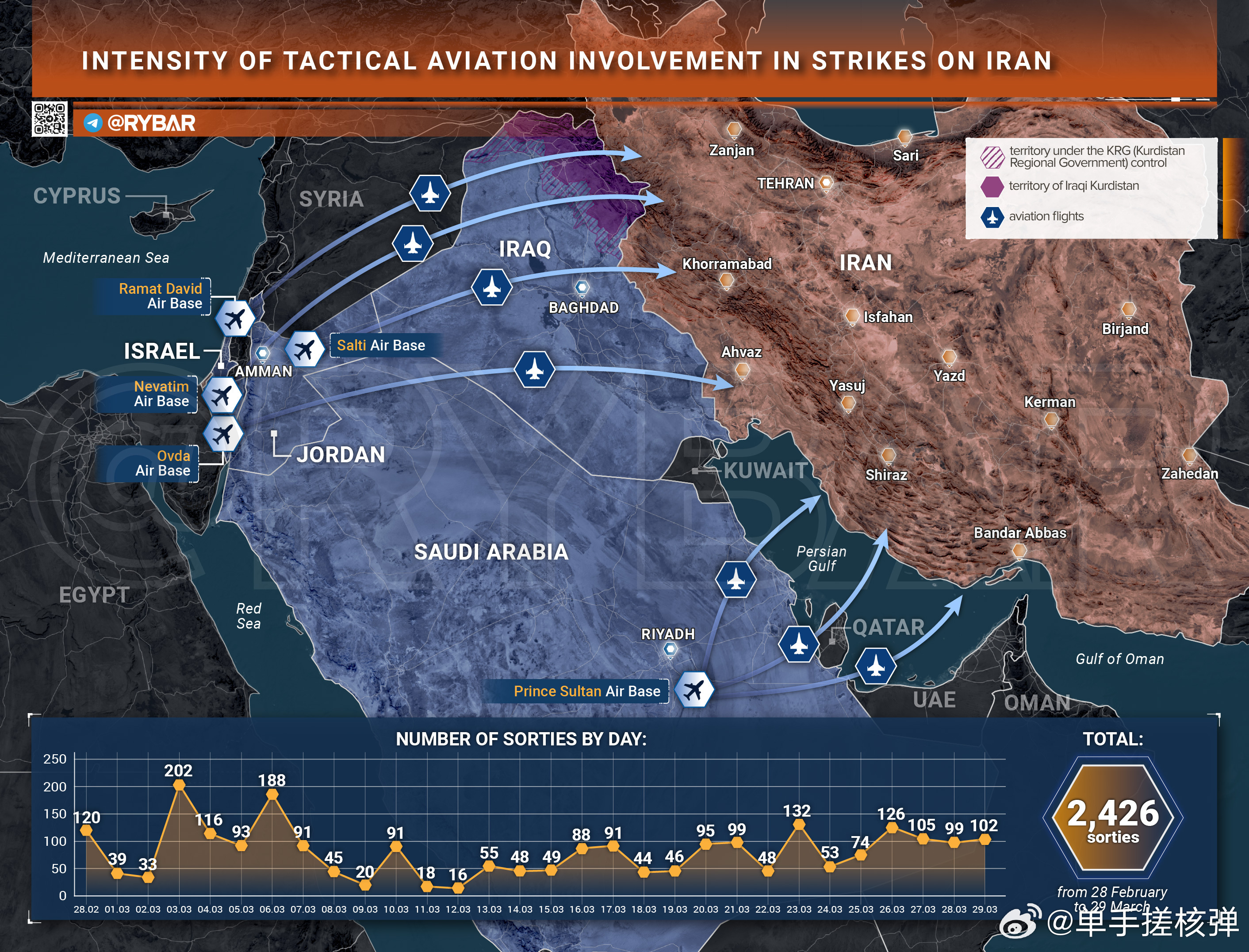 外网统计,开战前30天美以联军军机一共空袭了2400架次,期间一度掉到了100架次/天以下!