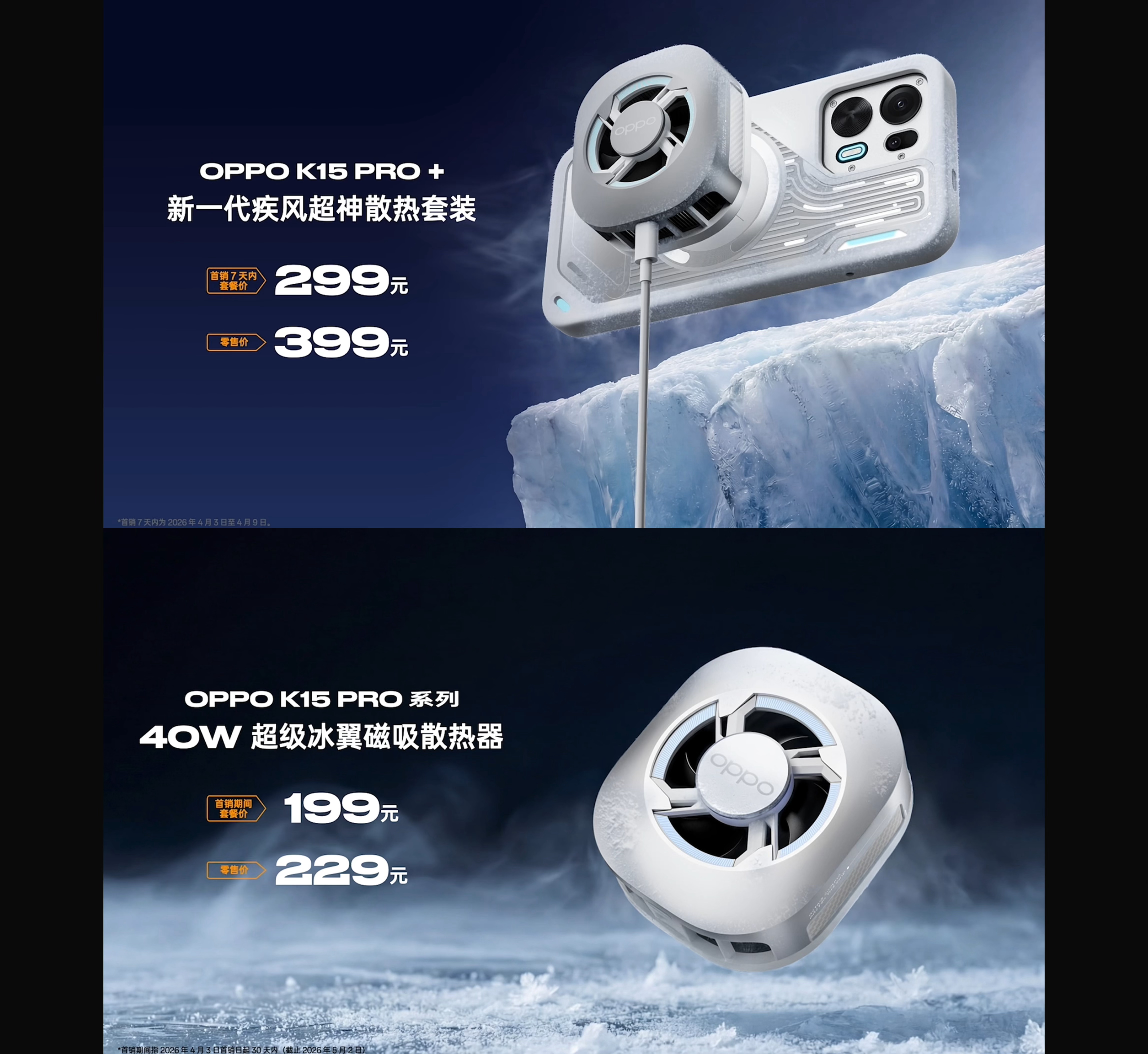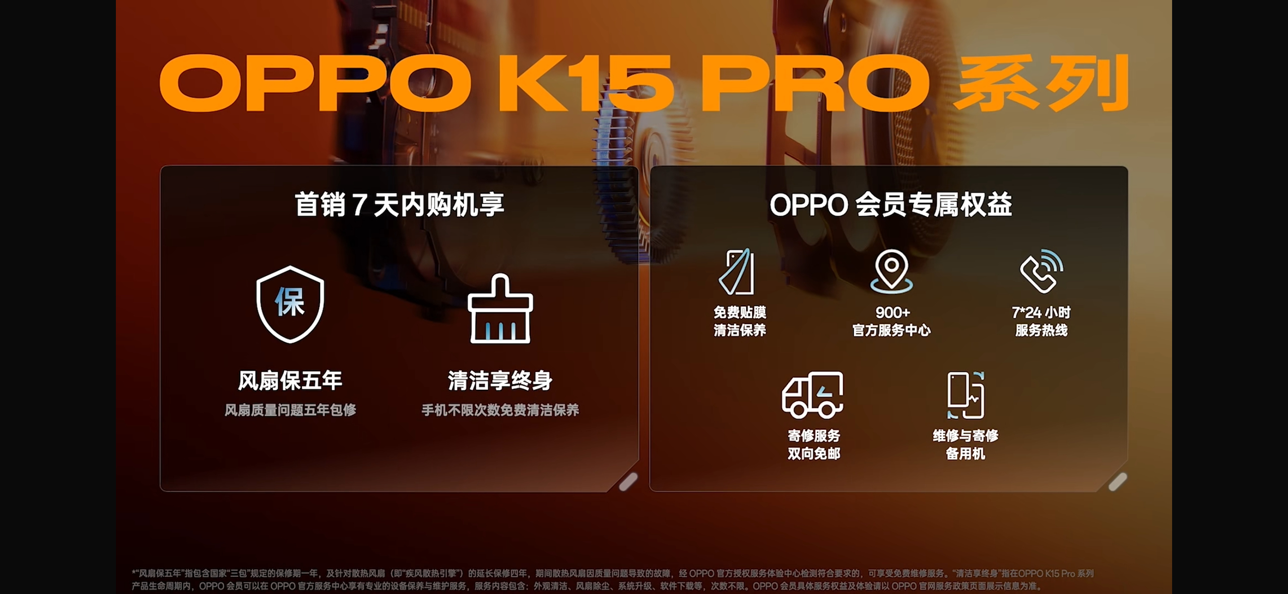 散热套装也给你们说清楚,Pro+专属的疾风超神套装首销7天299,单买40W冰翼散热器首销199。首销7天买就享风扇五年保修、终身免费清洁保养,还有OPPO会员的贴膜、寄修双向免邮这些权益,这波福利真的够实在。