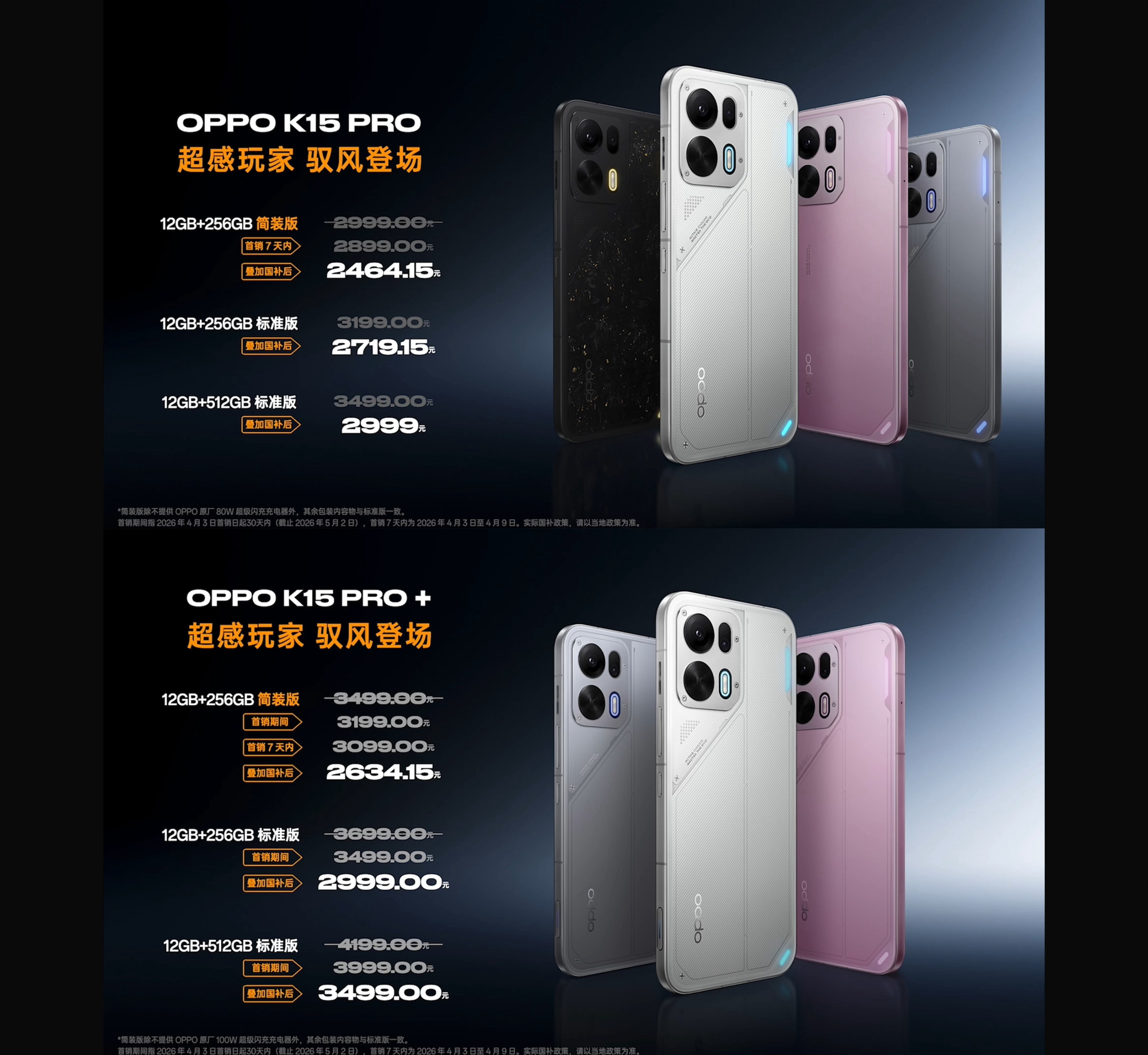 OPPO K15 Pro 系列这波价格和配置,真的很有诚意。给你们整理好最关键的信息: