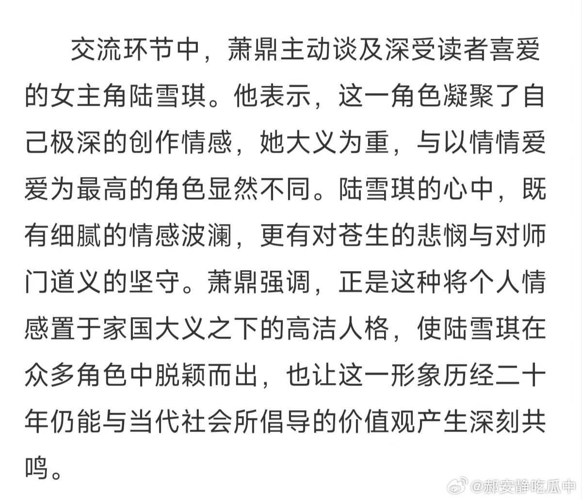 中国日报网认证+作者萧鼎亲自盖章的女主天花板陆雪琪!“大义为重,与以情情爱爱为最高的角色显然不同”,把个人情感置于家国大义之下,心怀苍生、坚守道义,清冷又坚韧的风骨,二十年后依然和当代价值观同频共振!萧鼎亲笔题字“诛仙唯一女主陆雪琪”,这才是真正的大女主,永远为雪琪心动!