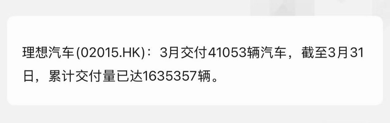理想纯电开始发力了!理想汽车3月交付成绩单正式出炉,单月交付41053辆,202
