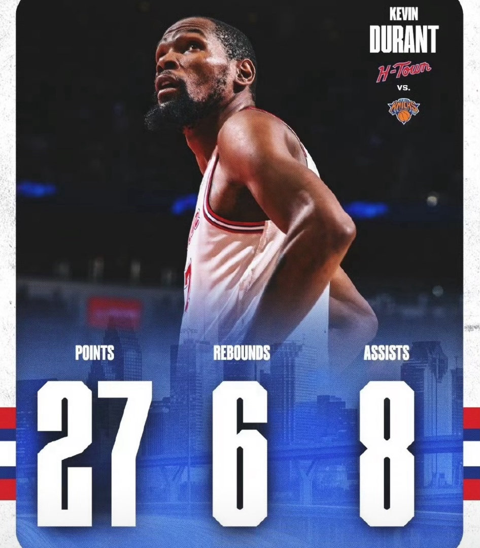 比赛从第一节开始,火箭就展现出了极强的竞争力,一路领先,最多时领先优势达20分以上。最终以17分的巨大优势大胜东部第三的尼克斯,这场胜利不仅是战绩上的提升,更是球队自信心和凝聚力的全面爆发。