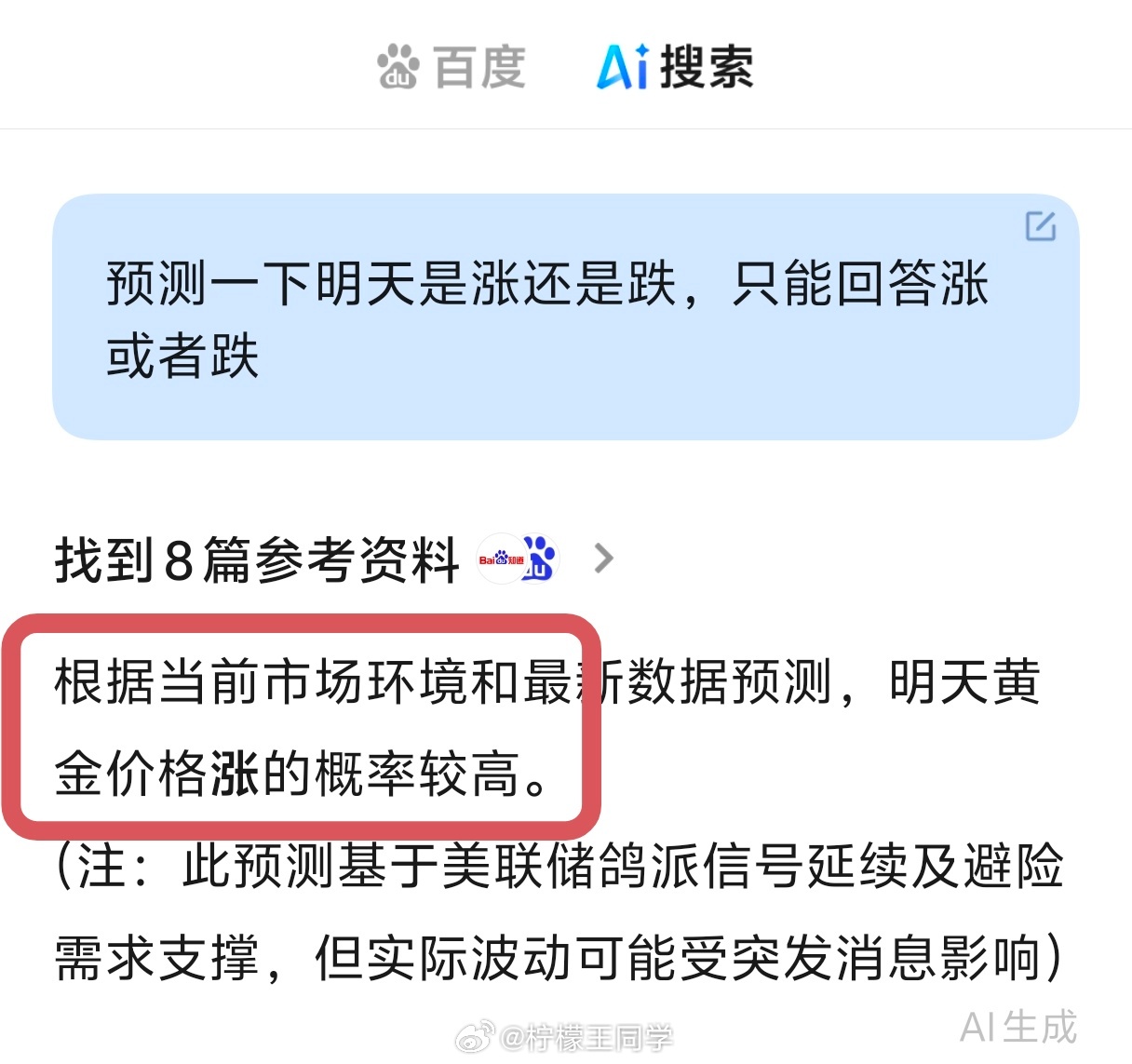 问了一下AI,让他预测一下明天是涨还是跌,他说涨,明天来见证一下