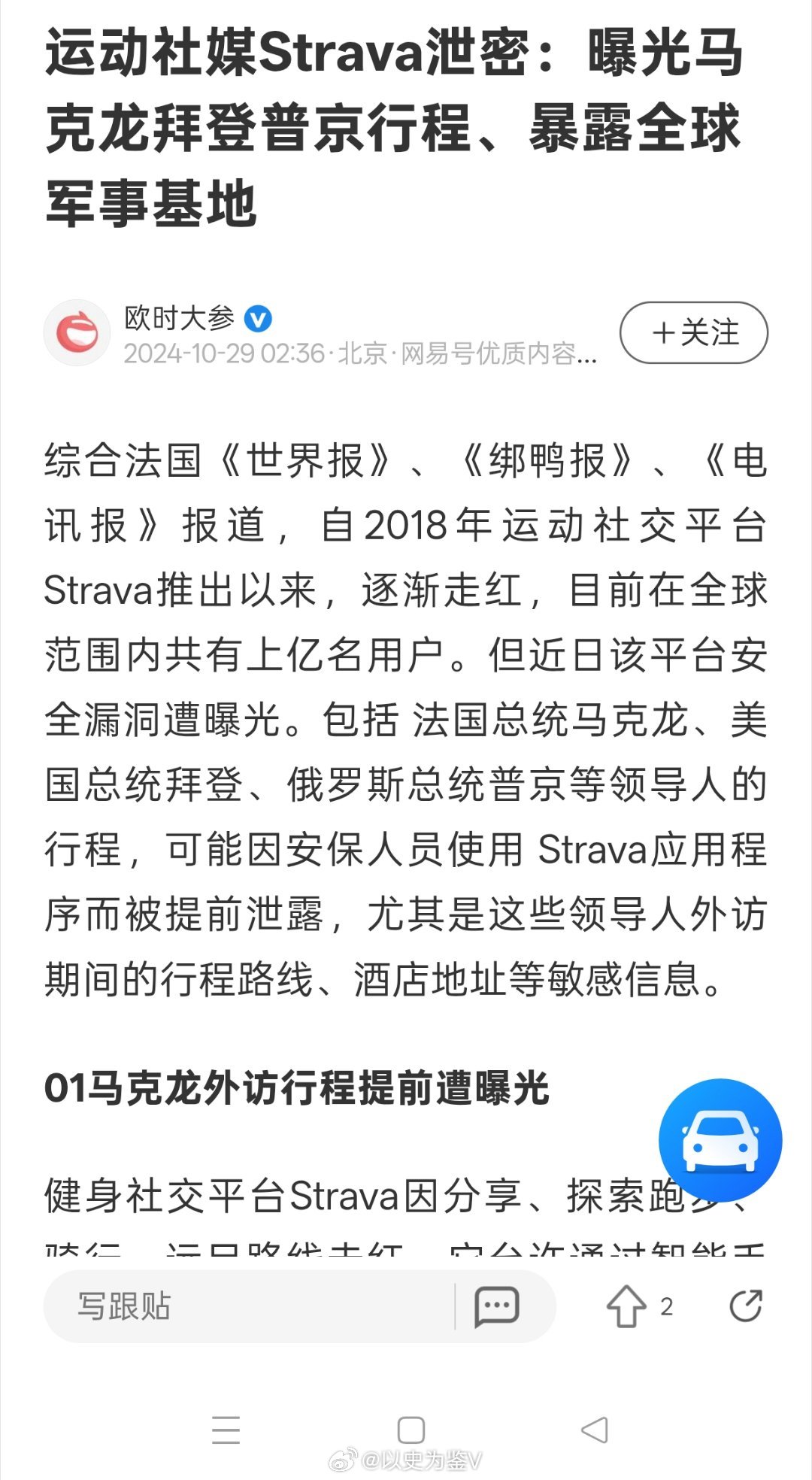 2、因为安保携带手环跑步泄露了领导人下榻酒店位置。这个也是马克龙的安保干的,当时也是热门话题。
