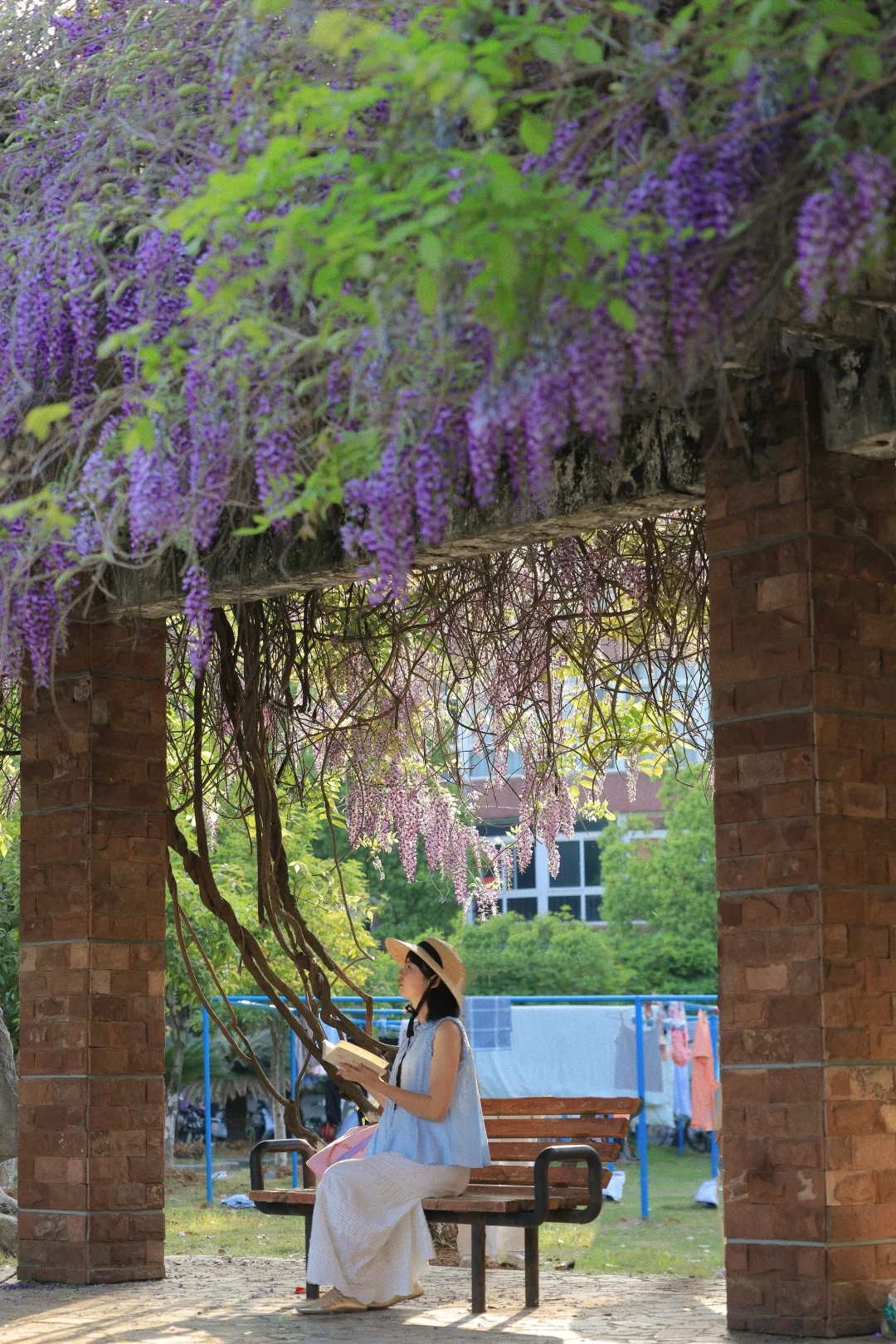 一场暴雨武汉樱花季画上句号,木绣球和紫藤花已经含苞待放 这片被私藏的紫藤长廊,花开时如瀑布倾泻,美得像漫画场景 📍武汉纺织大学阳光校区 🕒花期4月初(预计清明假期后盛开)