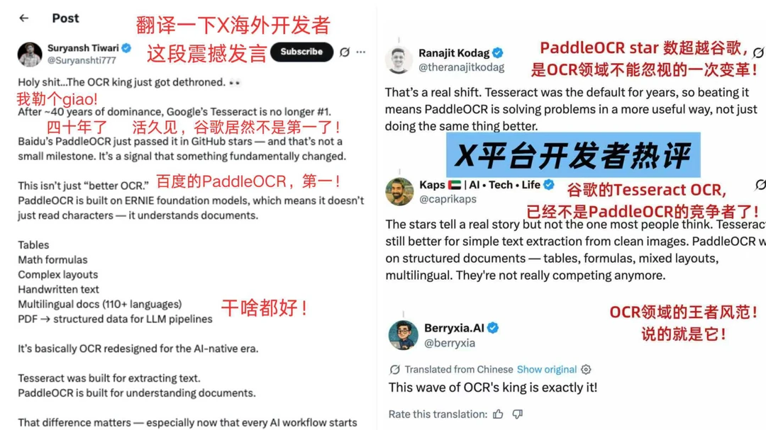 不可否认,谷歌仍是科技巨头,但在开源OCR这个核心赛道,“默认选它”的位置已属于中国。看着老外接连点赞安利,作为中国科技从业者,心中的自豪感按耐不住😭。这不仅是PaddleOCR的胜利,更是中国AI崛起的缩影,是我们在中美科技竞争中,凭硬实力赢得的又一份荣光。