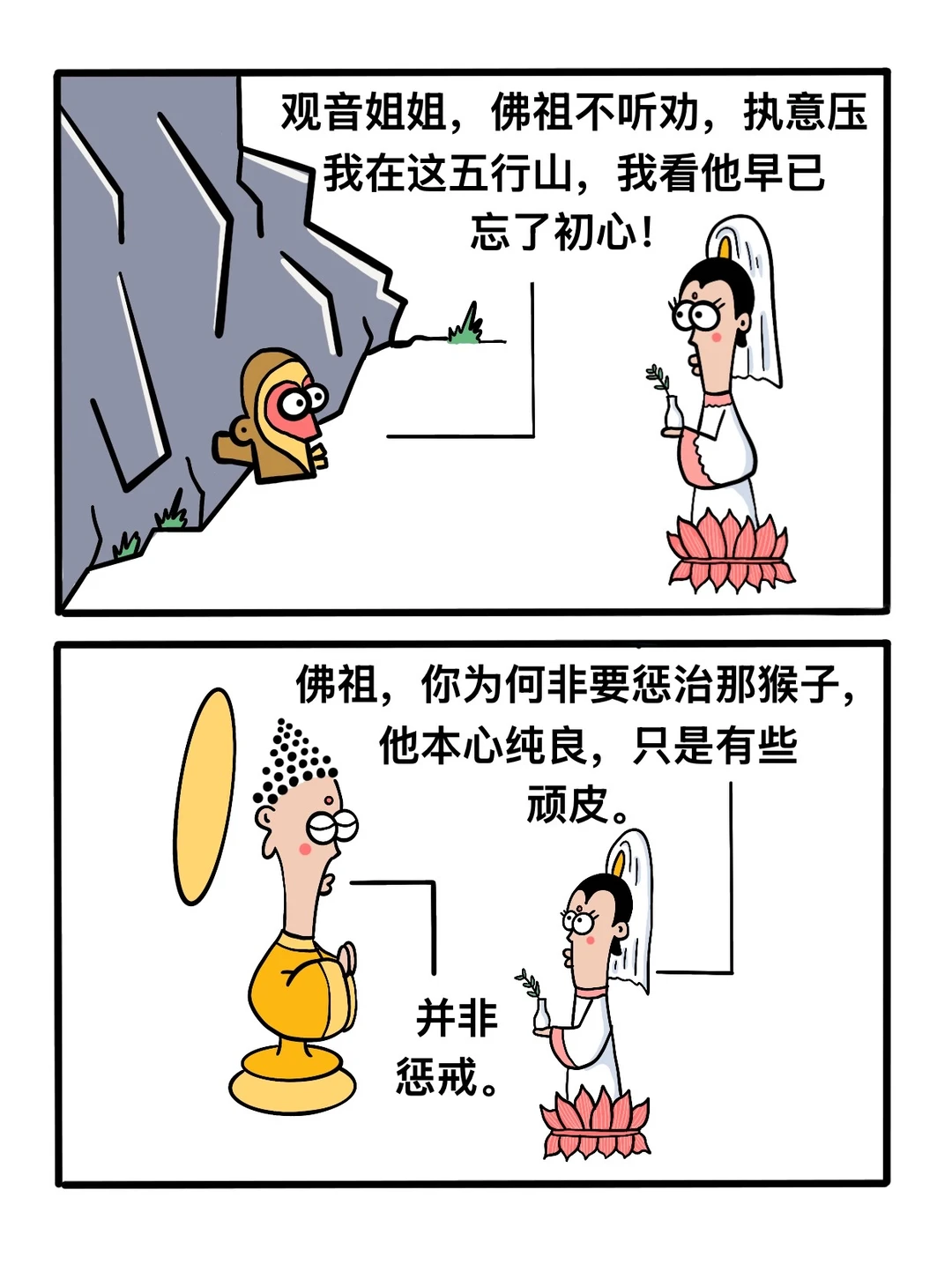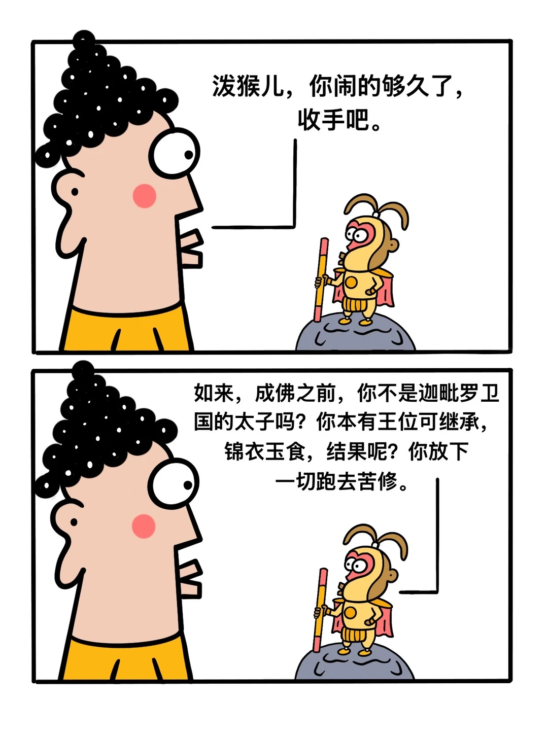 搞笑漫画 治愈系漫画 脑洞大开 佛系 神话 一颗善良的心 佛曰众生皆苦唯有自渡 泼猴儿与糖三角 原创漫画 西游记