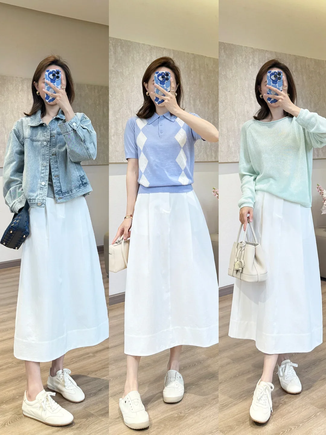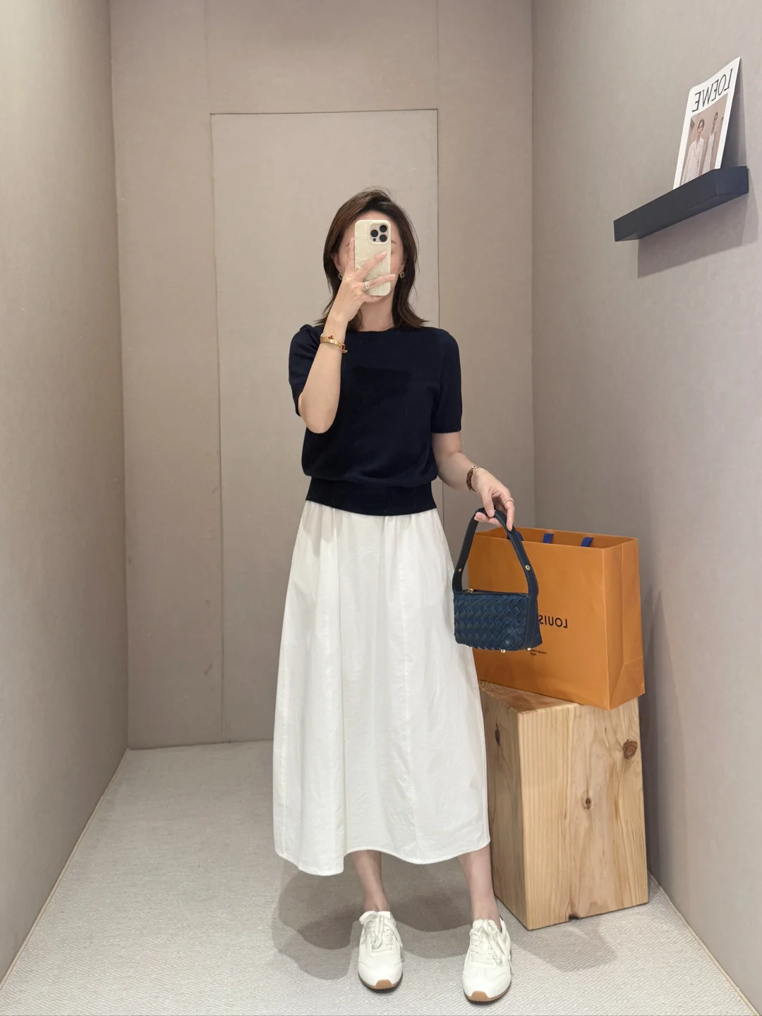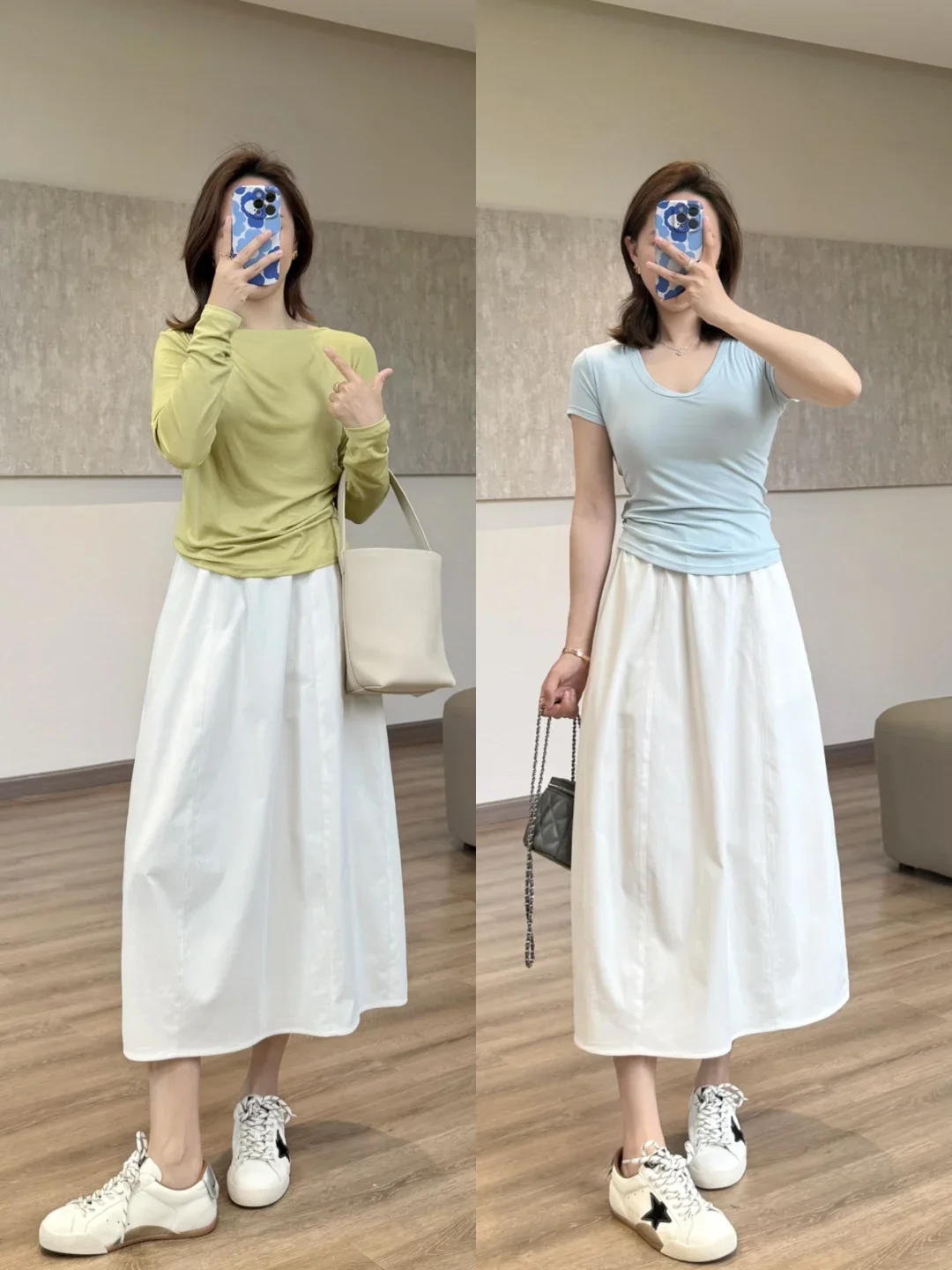 清明出门玩就想穿得舒服又出片😭这条白色半身裙直接焊在我身上! 不用费心搭配,降温随便一个外搭套上就出门~