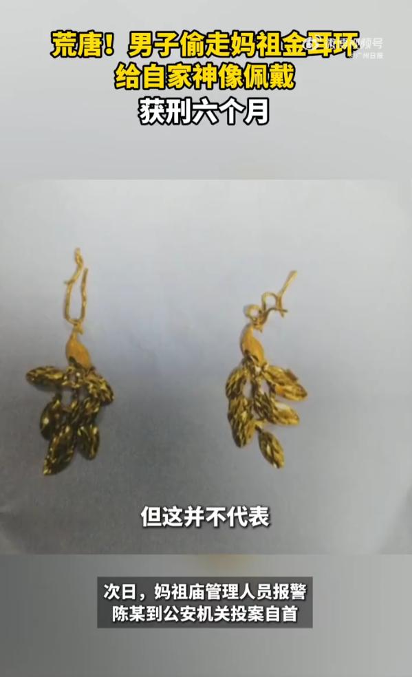 “这出闹剧太荒唐!”广东一男子为了给自己供奉的塑像“撑场面”,大着胆子撸走庙里的黄金耳环。陈某原本以为只是“挪用”,结果不仅赔了三千元罚款,还得去吃半年牢饭。如今二审一锤定音,后悔已然太迟!网友:信仰的底线是守法,手一旦伸错了地方,必然是冰凉的手铐。 事情发生在今年3月底之前,主角是陈某他本身也信妈祖,家里还专门供奉了一尊妈祖神像,有一天他没事闲逛,走进了当地一家妈祖庙,一进大殿他的目光就没放在神像的慈悲面容上,反倒死死盯上了妈祖耳朵上戴的那对黄金耳环。 那对耳环做工很考究,在庙里的灯光下金光闪闪看着就很值钱,陈某越看心里越不平衡,脑子里冒出一个荒唐的念头,凭什么庙里的神仙能穿金戴银,我自己家里供的妈祖却这么寒酸,连个像样的配饰都没有? 这个念头一旦冒出来,就再也压不下去了他,左右看了看,大殿里四下无人,连个巡查的人都没有,竟然一点都没犹豫,直接翻上神台,手脚麻利地把那对金耳环摘了下来,揣进了自己兜里。 拿到耳环后他压根没想过拿去金店变现换钱,反而急匆匆地赶回家,满心欢喜地把这对偷来的耳环,恭恭敬敬地戴在了自己家供奉的妈祖神像耳朵上在,他看来自己这不是偷,顶多算是把神明的东西“挪”过来用用,帮神明做了一次“内部调配”,没什么大不了的。 可他哪里知道自己这种行为,早就触犯了法律。第二天一早庙里的管理员例行巡查,看到神像耳朵上的耳环不见了,当场就慌了神,这可是供奉在公共场所的敬神之物,这种行为不仅亵渎了信仰,还侵害了公共财物,很快就引起了信众们的怒火,庙方当即就报了警。 警方接到报警后,立刻立案调查,调取了庙里的监控,没费多大劲就锁定了陈某的行踪,陈某察觉到事情不对劲,知道自己躲不过去了,心里的侥幸和骄傲瞬间被恐慌取代,赶紧把耳环取下来,哆哆嗦嗦地去公安局投案自首了。 面对警察的询问,陈某倒是很坦白,承认了自己偷耳环的事实,但他始终觉得自己没做错,反复说自己只是想好好供奉神明没有恶意,也没想过占为己有,觉得这事顶多道个歉、赔点钱就能过去。 可法律可不管他的主观借口,只看客观事实和证据,经过专业机构估价,这对耳环的市场价值高达9190元,在广东这个金额已经达到了盗窃罪“数额较大”的立案标准,已经不是普通的治安纠纷,而是实打实的刑事犯罪。 陈某的家人急得团团转,赶紧凑钱给庙方做了全额赔偿,好不容易才拿到了庙方的谅解书,本以为能减轻处罚,可一审法院还是做出了判决,陈某因盗窃宗教场所财物,数额较大,被判处有期徒刑六个月,还罚款三千元。 陈某对此很不服气,觉得自己一片“虔诚”,判得太重了,竟然上诉到了中级法院,可二审法院经过仔细核查,认为一审判决适用法律准确量刑适当,最终一锤定音驳回上诉维持原判。 直到这时陈某可能才真正后悔,可一切都晚了,网友们看完这事也纷纷感慨,信仰的底线是守法,不管打着多么冠冕堂皇的旗号,只要伸手偷东西,触犯了法律,等待自己的终究是那副冰凉的手铐,好好的信仰被自私的贪念毁了,最后落得个牢狱之灾,实在是得不偿失。 (信息来源:《荒唐!男子偷走妈祖金耳环给自家神像佩戴,获刑六个月》广州日报)