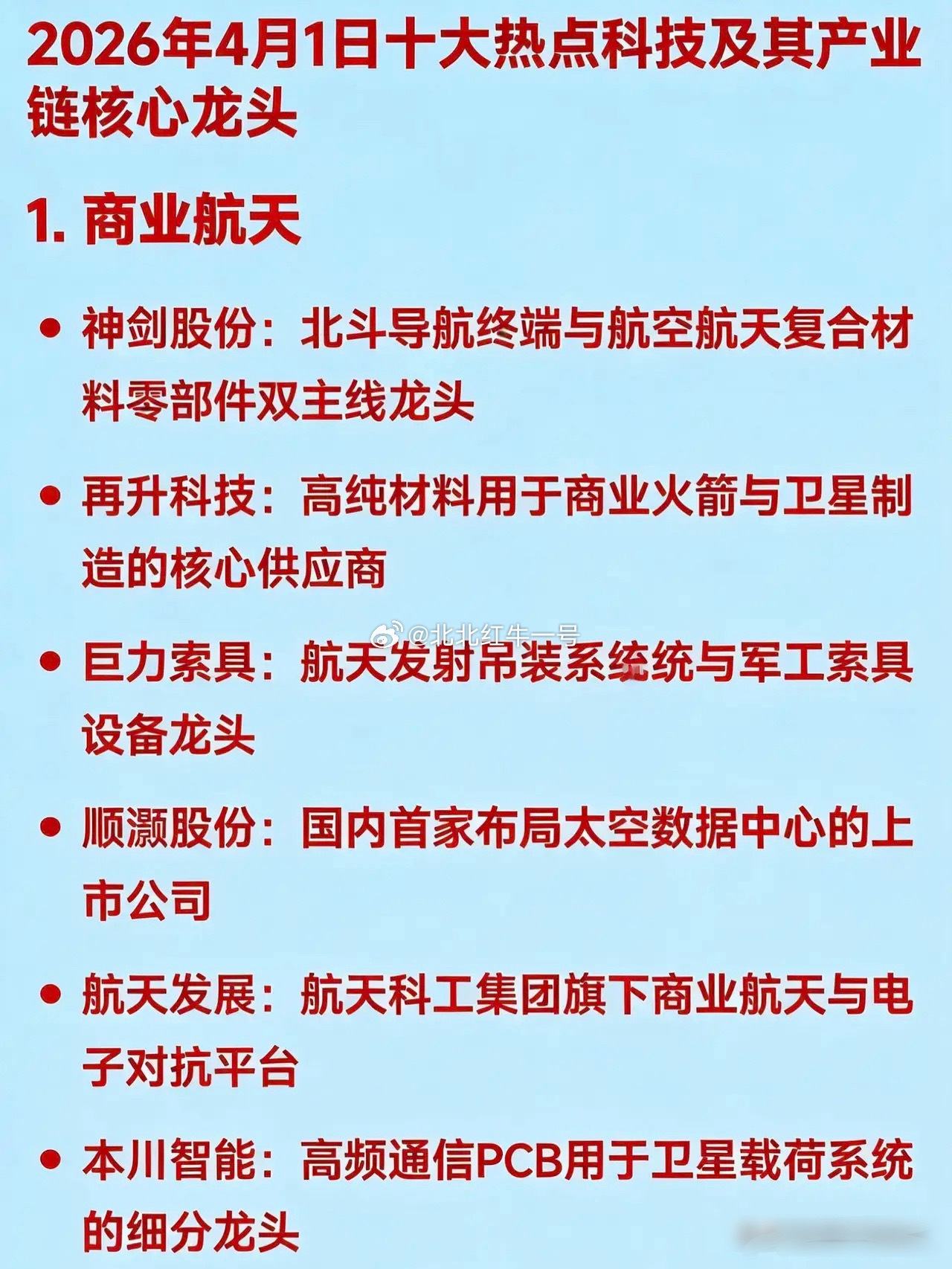 2026年4月1日十大热点科技及其产业链核心龙头1. 商业航天神剑股份:北斗导航