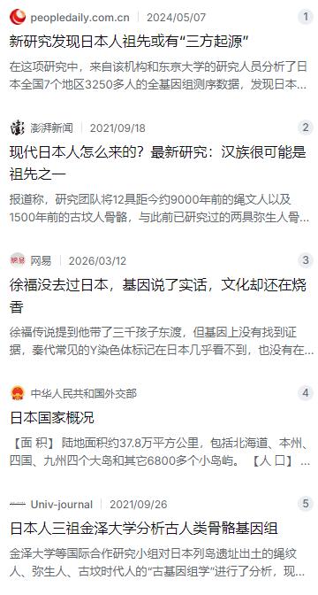 日本祖先真相大白:不是徐福后代,DNA检测结果让日本人无法接受。根据基因研究,日本人群的遗传谱系与徐福传说毫无关联,这一颠覆性结论令日本学界陷入集体困惑。 麻烦看官老爷们右上角点击一下“关注”,方便您进行讨论和分享,感谢您的支持! 关于日本人祖先来源的讨论,这些年一直没停过。其中最广为流传的说法,就是徐福东渡的故事——当年秦始皇派徐福带着三千童男童女出海求仙,最后这批人留在了日本列岛,成了现代日本人的祖先。这个说法在日本民间甚至部分学界都很有市场,但最近几年的一系列基因研究,把这层老黄历彻底翻了个个儿。 2021年,日本金泽大学和鸟取大学的研究团队联合搞了个大动作。他们对从日本多个遗址出土的绳文时代、弥生时代和古坟时代的人骨进行了全基因组分析,一共提取了12具古代人骨的遗传信息,再结合之前已有的数据,得出了一个颠覆性的结论:现代日本人的祖先来源不是两拨人,而是三拨人。 这三拨人分别是:最早定居日本列岛的绳文人、弥生时代从东北亚过来的移民,以及古坟时代从东亚过来的移民。其中,古坟人这一支的基因贡献最大,占了现代日本人遗传信息的71%左右。这个研究当时发在了权威期刊《科学进展》上,在日本学界引起了不小的震动,被称为"三方起源模型"。 到了2024年,日本理化学研究所联合东京大学,又做了一次更大规模的研究。这次直接对日本全国七个地区的3256名现代人进行了全基因组测序,相当于把现代日本人的基因底细翻了个底朝天。 结果不仅验证了2021年的结论,还把细节挖得更深了。研究团队发现,这3256人的基因可以清晰地分成三大类:绳文系、关西系和东北系。其中,关西地区的居民基因跟中国黄河中上游地区的古代人群亲缘性极高,而东北地区和冲绳地区的居民则保留了更多的绳文成分。 最关键的一点来了:这些研究结果跟徐福传说完全对不上号。 首先,古坟人的迁徙时间远早于徐福东渡的传说年代。徐福的故事发生在秦朝,大概是公元前200多年,而古坟时代是公元3世纪到7世纪,但古坟人这一支基因代表的移民潮,实际上在更早的时候就开始了,而且跟秦朝没有直接的遗传关联。 其次,也是最致命的一点——基因检测里压根没找到徐福船队的痕迹。徐福是秦朝人,秦朝人的父系基因里有一个叫M117的突变特征,这个特征在现代汉族里很常见,但在这次检测的日本人群里,完全没有发现大规模存在的迹象。就算徐福当年真带了三千童男童女,从遗传学的角度来说,这波人对现代日本人基因库的贡献微乎其微,估算下来可能连0.2%都不到。 简单说,如果徐福真是日本人的祖先,那日本男性的Y染色体里应该大量存在跟秦朝人一样的标记。但现实是,日本男性的主流父系是D1a2和O1b2,前者是绳文人的老底子,后者是弥生人从朝鲜半岛带过来的,跟秦人没有直接关系。真正跟中国北方汉族对得上的O2类型,反而是通过古坟人这一支在公元3世纪以后才大规模进入日本的。 这样一来,整个事情就清楚了:对日本人基因库影响最大的那拨人,是古坟时代从黄河流域过来的移民,他们带来了当时先进的农业技术、金属冶炼和土木工程知识,直接推动了日本列岛从弥生时代向古坟时代的跨越。他们的迁徙时间大概在公元3世纪左右,也就是中国的魏晋时期,比徐福晚了四五百年。 而且这拨移民的规模相当大,不是徐福那种几百上千人的小团队,而是成规模的、持续的人口迁徙。基因数据摆在那里——71%的贡献率,说明古坟人跟本地人发生了大规模的混血,彻底改写了日本列岛的人口结构。 这项研究还有个有趣的发现:日本各地居民的祖先成分不太一样。冲绳地区因为地理位置偏远,绳文人的基因保留得最多;东北地区也是绳文成分偏高,可能跟历史上的虾夷人有关;而关西地区,也就是奈良、大阪这一带,大陆来的农耕基因比例最高,因为这里是当年弥生人和古坟人登陆后最早扎根的地方。 所以现在日本学界的共识是:现代日本人是由绳文人、弥生人、古坟人三股血脉融合而成的,其中古坟人是最主要的一支,而这支古坟人跟中国黄河流域的古代人群关系非常近。至于徐福,基因研究已经给出了明确的答案——他跟日本人祖先这件事儿,基本没啥关系。 当然,日本民间对徐福的祭祀活动还会继续,和歌山、熊野等地还有不少徐福庙,每年都有人去上香。但文化和基因是两回事。传说可以寄托情感,但科学该是什么样就是什么样。日本学界对这个结果虽然有些复杂情绪,但数据摆在那里,也只能接受现实。毕竟,搞清楚自己到底从哪儿来,总比抱着一个美丽的故事自我欺骗要强。