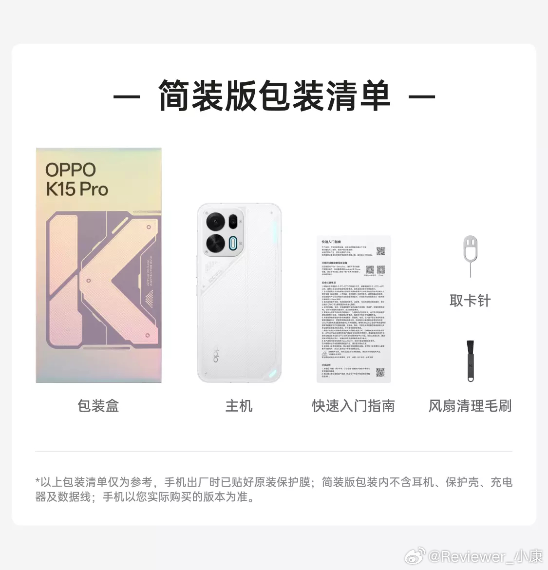 值得注意,OPPO K15 Pro有两个版本,标配版和简装版。简装版少了保护壳、