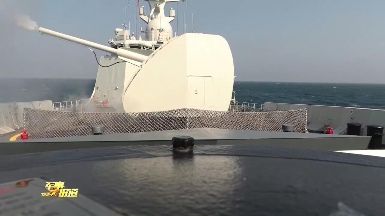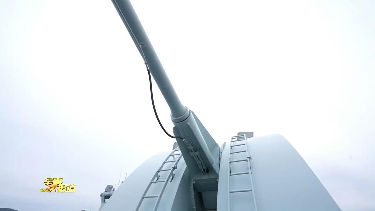 054AG临汾舰、鄂尔多斯舰新批次100主炮特写。
