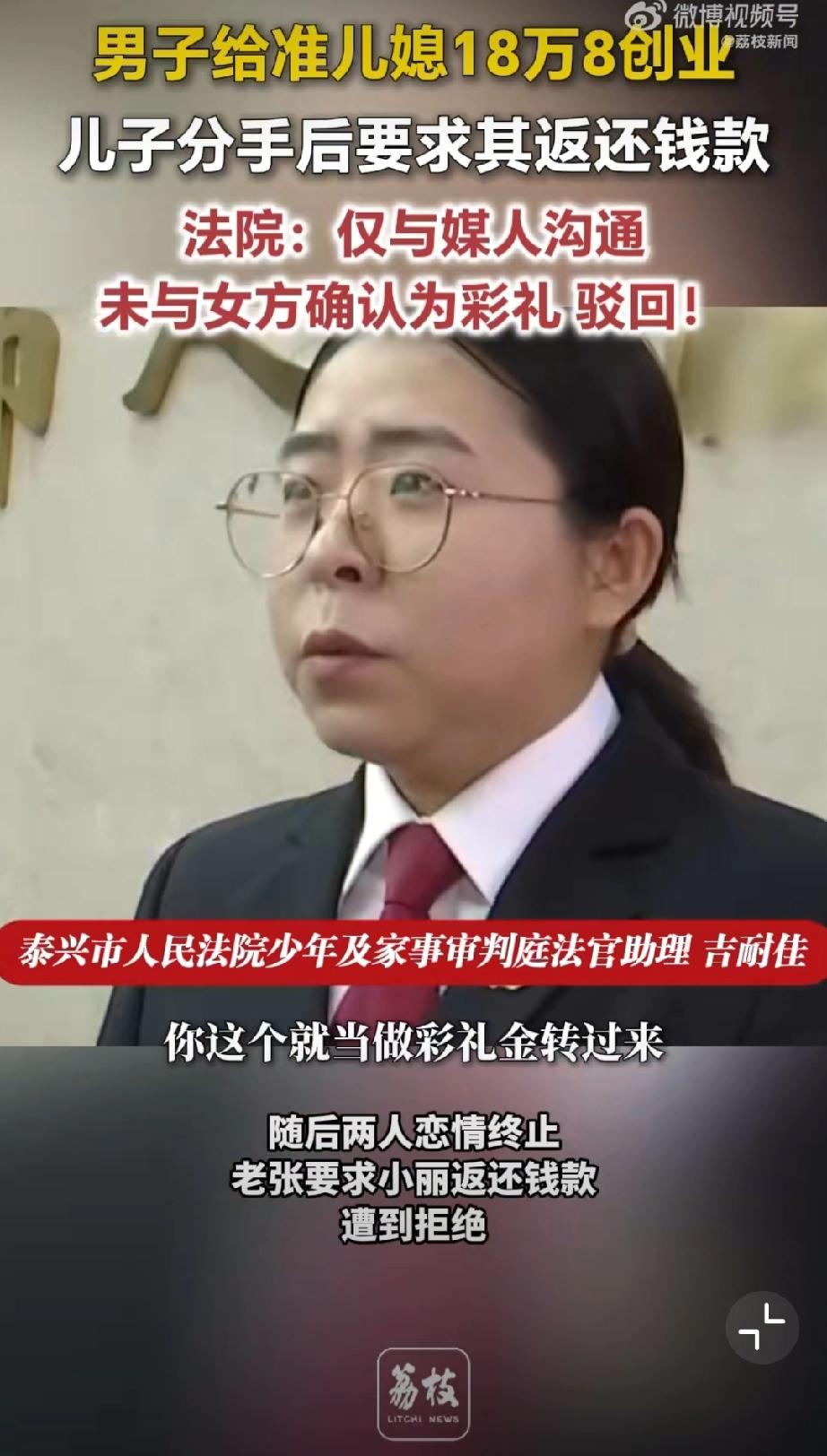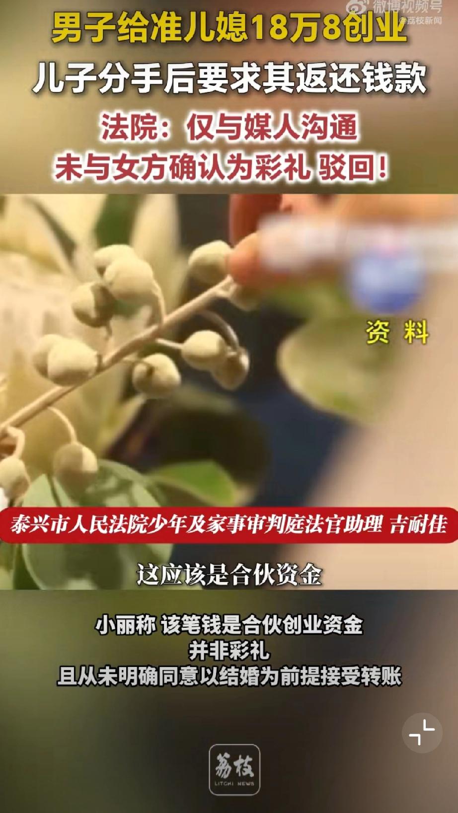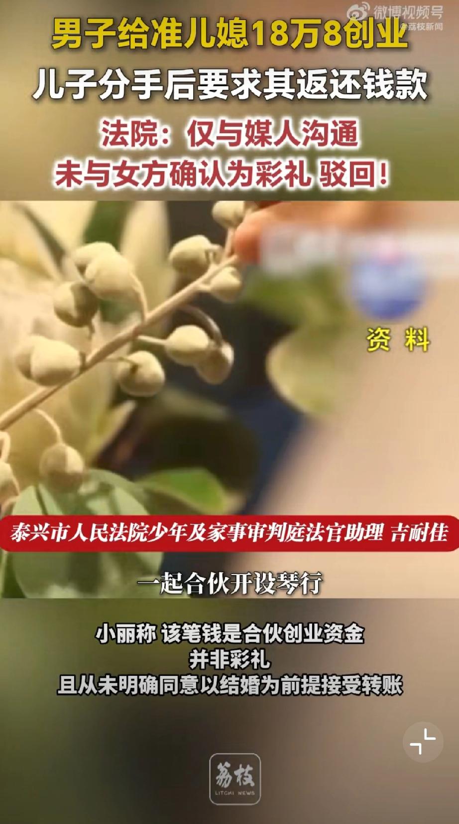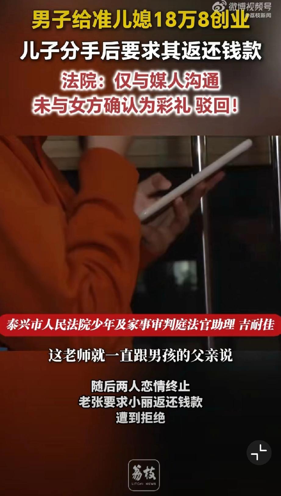 给准儿媳18万8创业分手索要被拒。老张为促成儿子小张与小丽的婚事,在媒人告知下,向小丽转账 18.8 万元用于开办乐器培训机构,老张与媒人认定该笔款项为彩礼。后两人恋情终止,老张要求小丽返还钱款,遭到拒绝。小丽辩称,该笔钱是合伙创业资金,并非彩礼,且从未明确同意以结婚为前提接受转账。 法院审理认为,老张仅与媒人沟通彩礼事宜,媒人未获得女方授权,小丽自始至终未确认该款项为彩礼,也未同意附结婚条件赠与。最终法院驳回老张要求返还18.8万元的诉讼请求。 儿媳妇没了,18.8万也没了。彩礼打官司 彩礼创业
