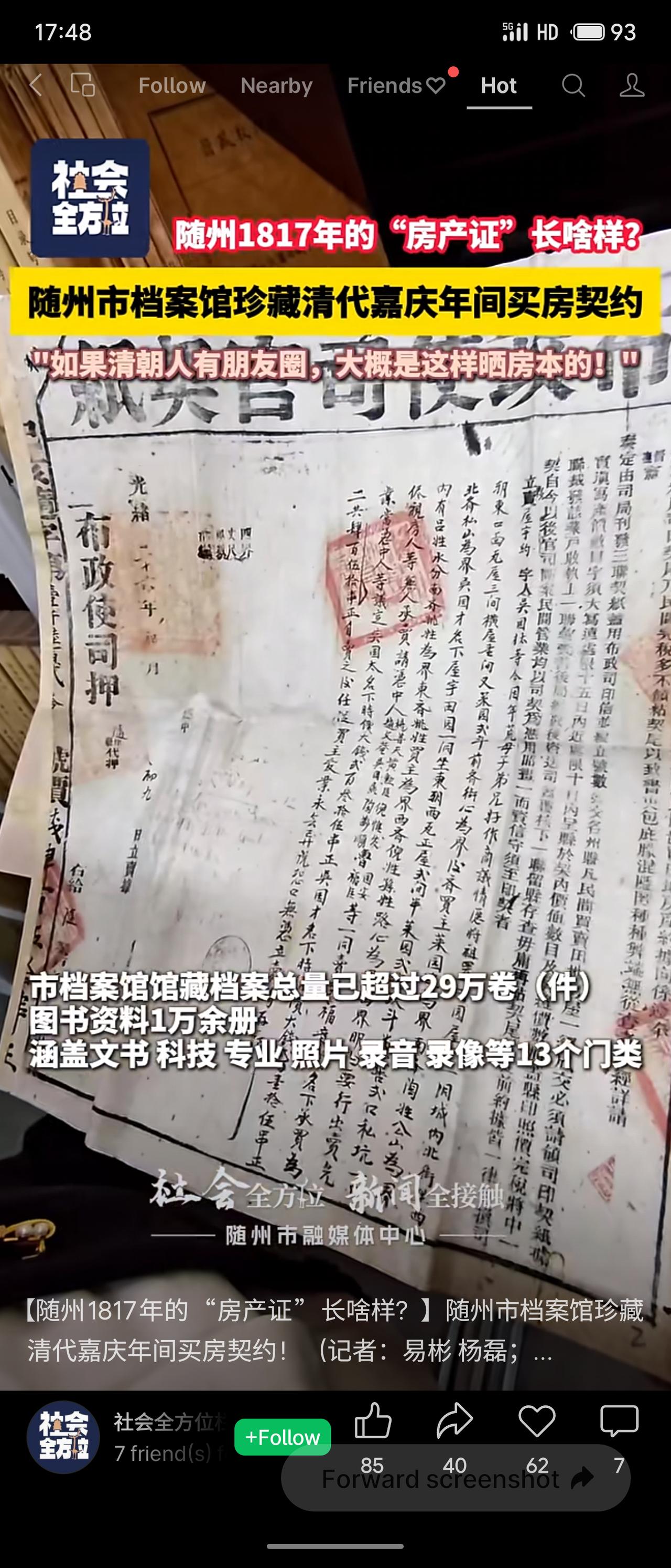 随州市档案馆珍藏清代嘉庆二十二年(1817年)买房契约,时间跨度从1817年至1942年,共41余件,展现了百余年间房地产契约的历史面貌。