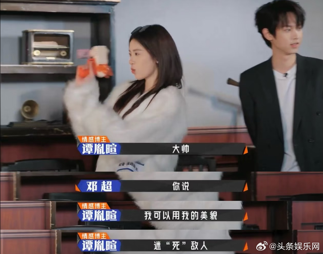 邓超听到用美貌迷死敌人的反应能让邓超沉默的人不多 邓超在节目里沉默了,因为谭胤暄说她要用美貌迷死敌人。这句话配上她认真喷泡泡枪的画面,确实让人不知道该怎么接。但新人嘛,谁没经历过这个阶段,希望她能在节目里多学多练,把这份自信转化成真正的演技