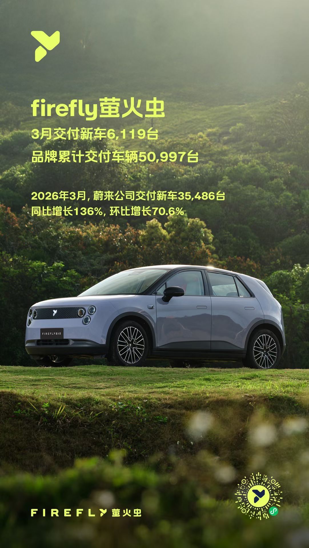 -蔚来 22490 台- 乐道 6877 台- 萤火虫 6119 台