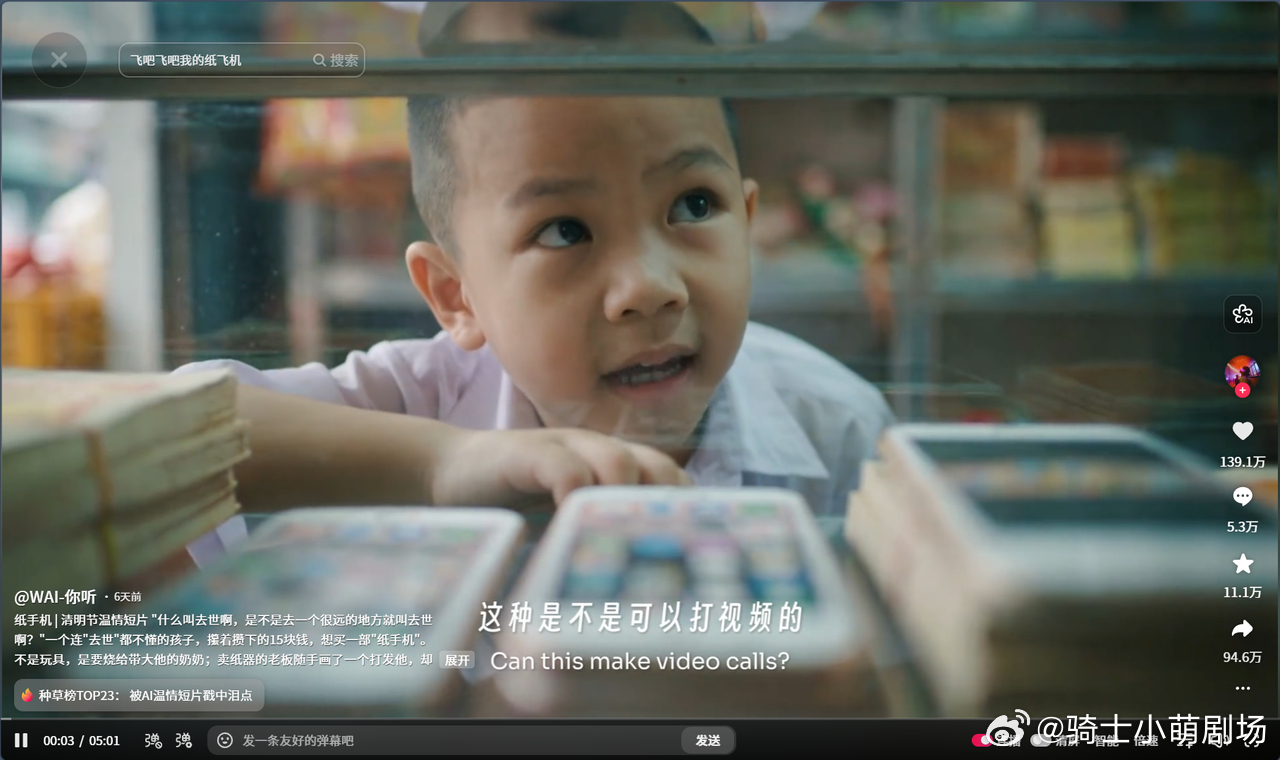 AI短片纸手机火了这条暖心AI短片火出圈,一句“你奶奶已经付过了”看哭好多人,好内容不该被埋没,真心想让更多人看到它