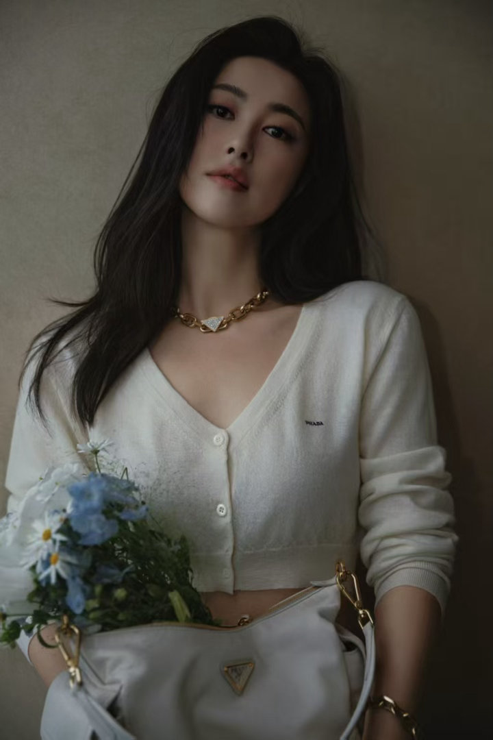 朱珠捧花照朱珠把白裙穿成高定 朱珠捧花照,白裙高定感封神