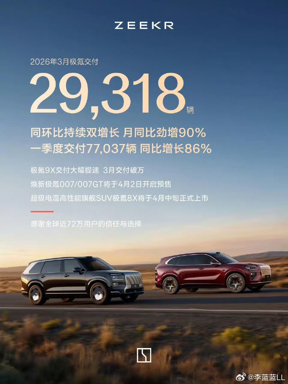 极氪3月交付29318辆杭州库里南卖得还真不错,3月交付破万了!!