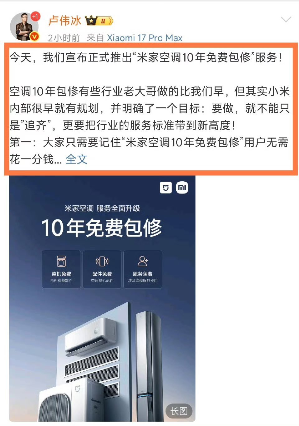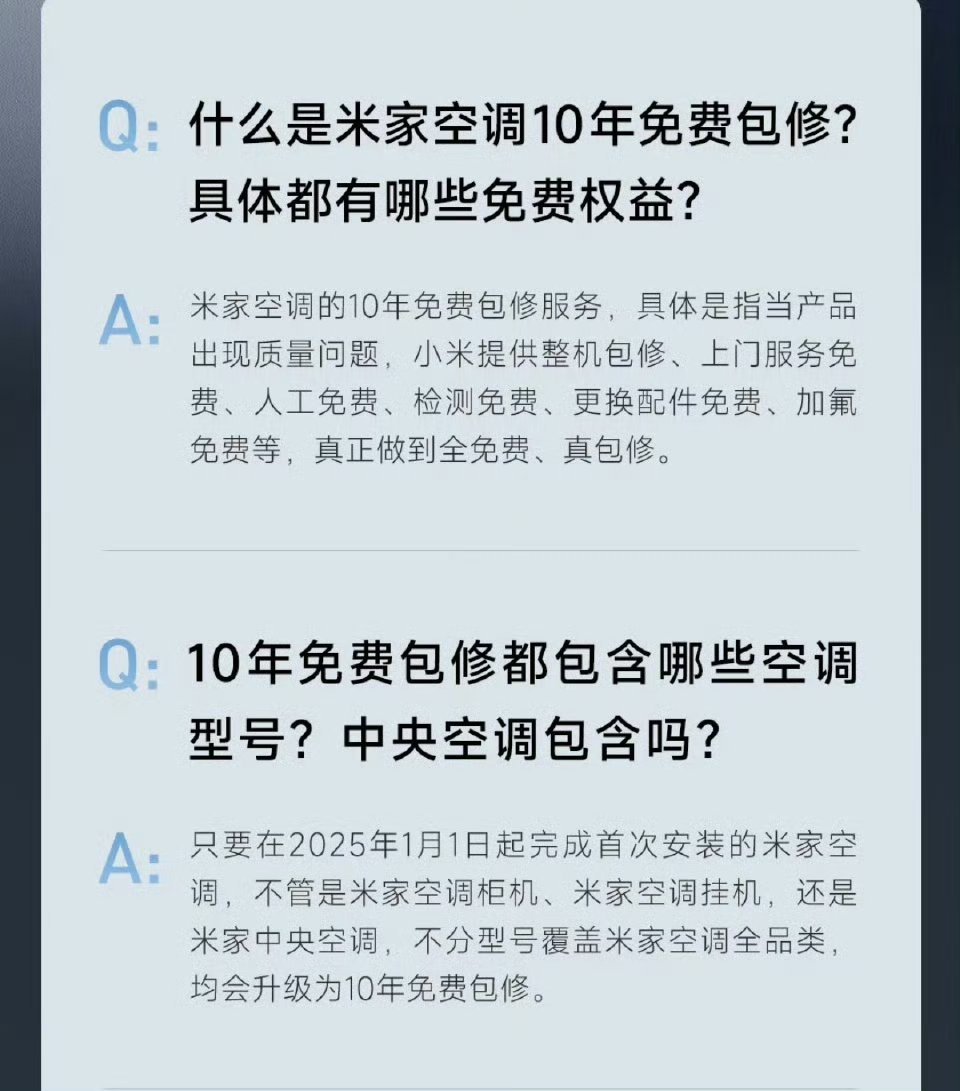 小米空调「10年免费包修」: