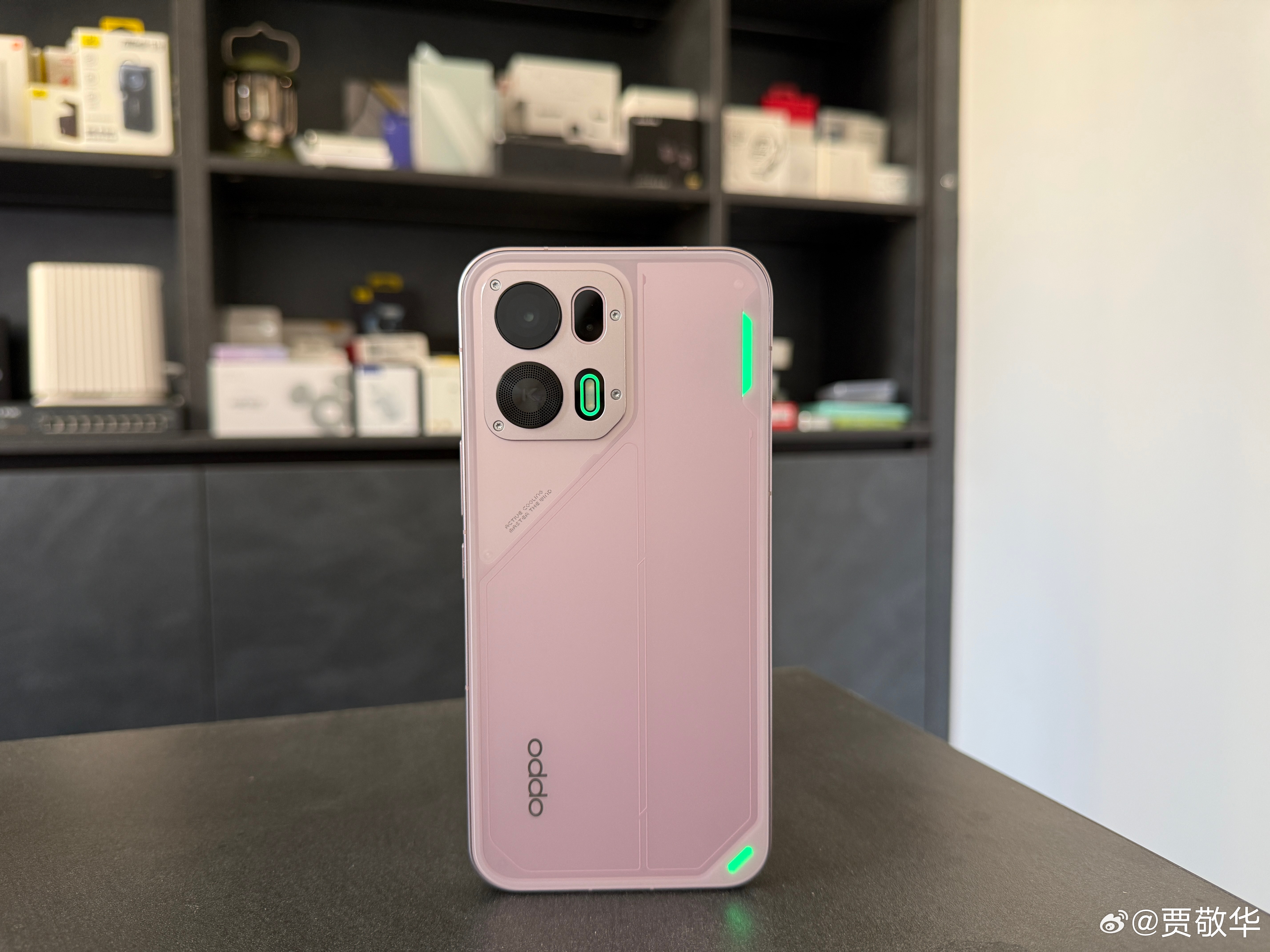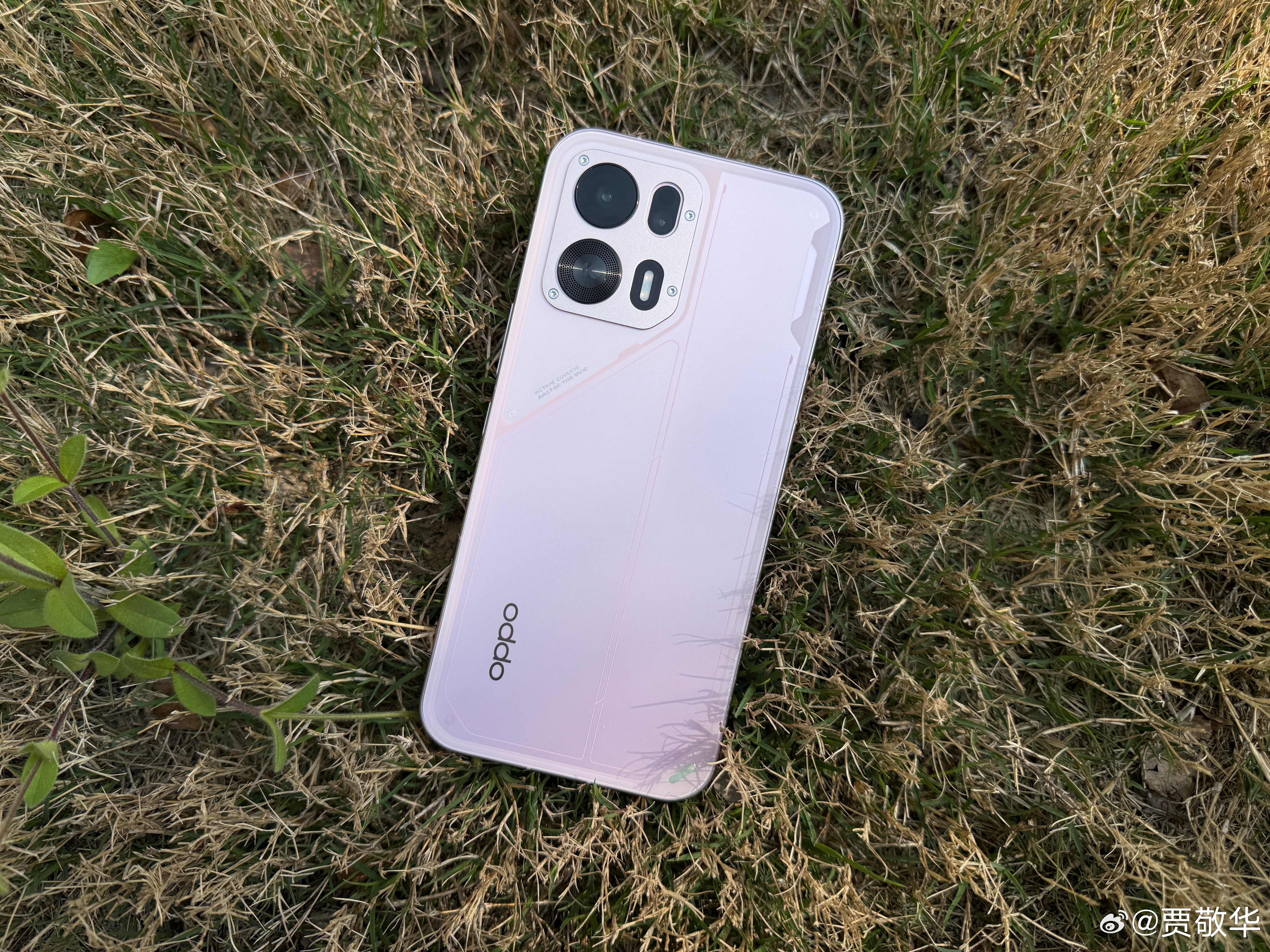 给大家看一台样找手机,光尘粉的外观,不同光线下还有渐变的效果,这个太帅了。