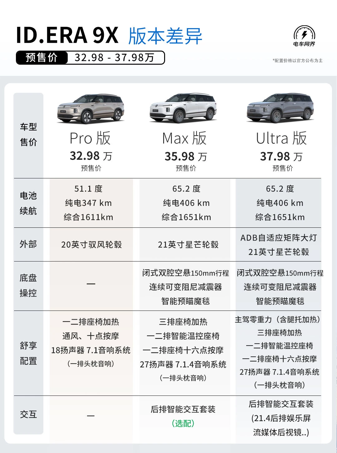ID.ERA 9X 价格、配置公布,入门版最推荐❓