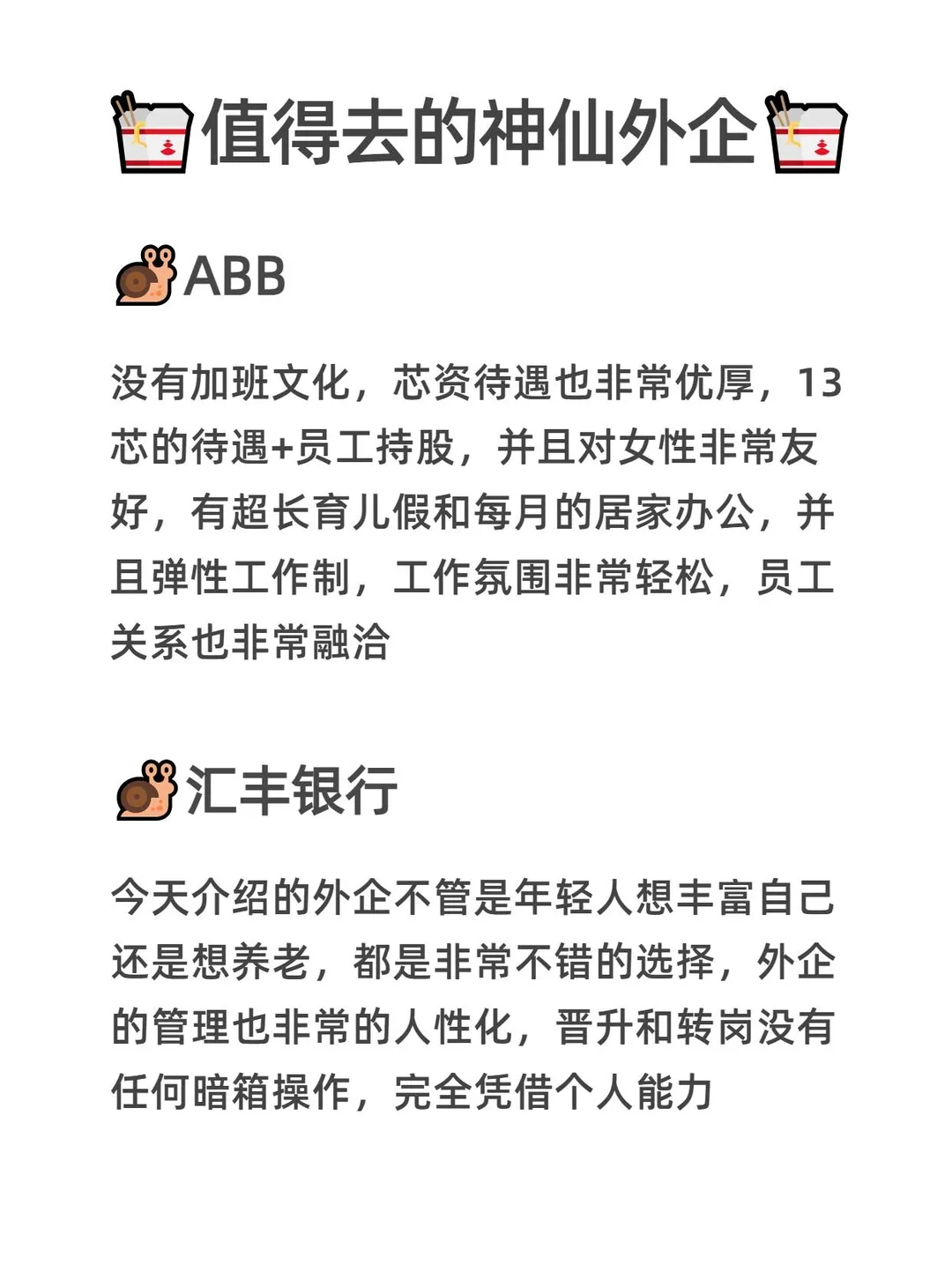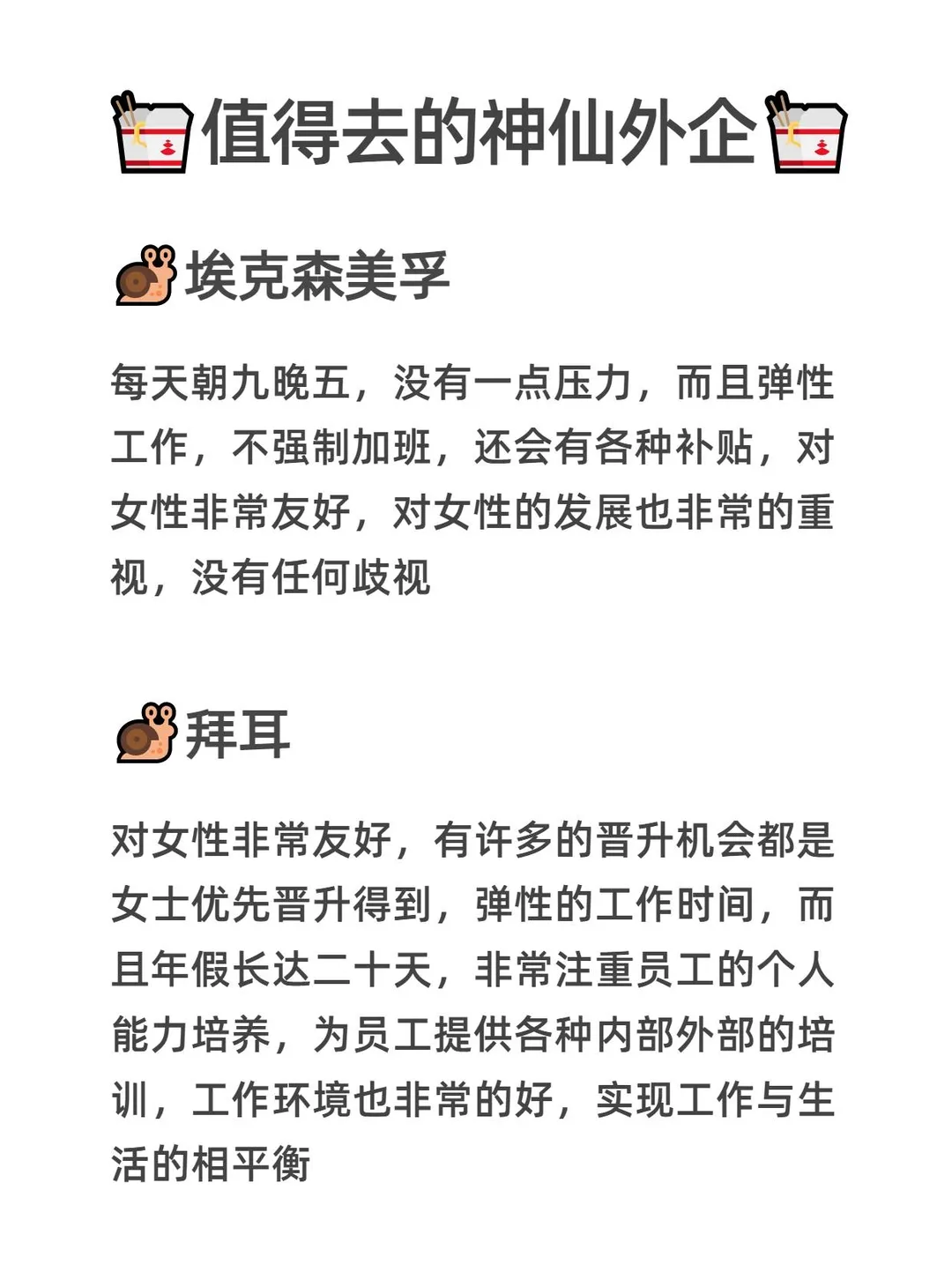 真心建议找工作的宝子们冲一波广州外企! ~ 📌弹性打卡,双休,准点下班不内卷[色色R] 📌对女性职场发展超友好,[赞R]年假普遍 15 天起 📌支持居家办公,内有复杂的人际关系[喝奶茶R] ~ 我整理好了外企的信息表,[微笑R]希望帮助宝子们早日拿到心仪的offer~ ~